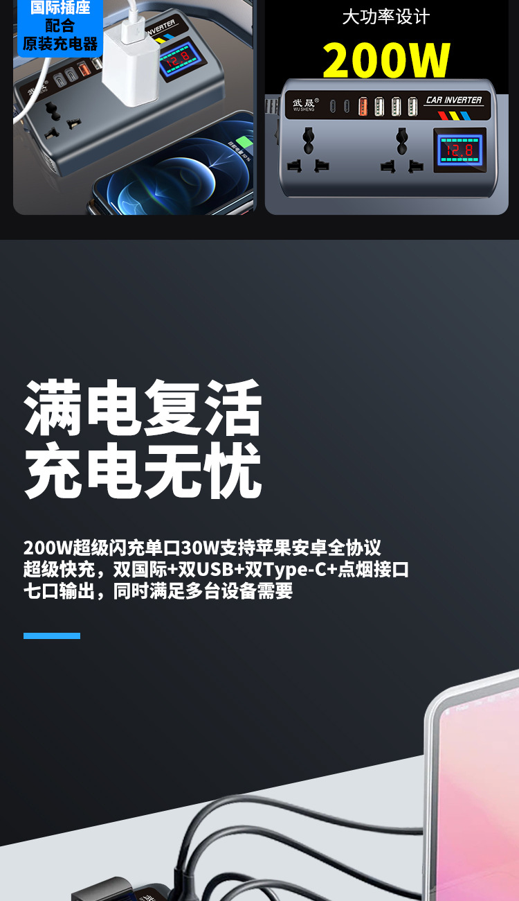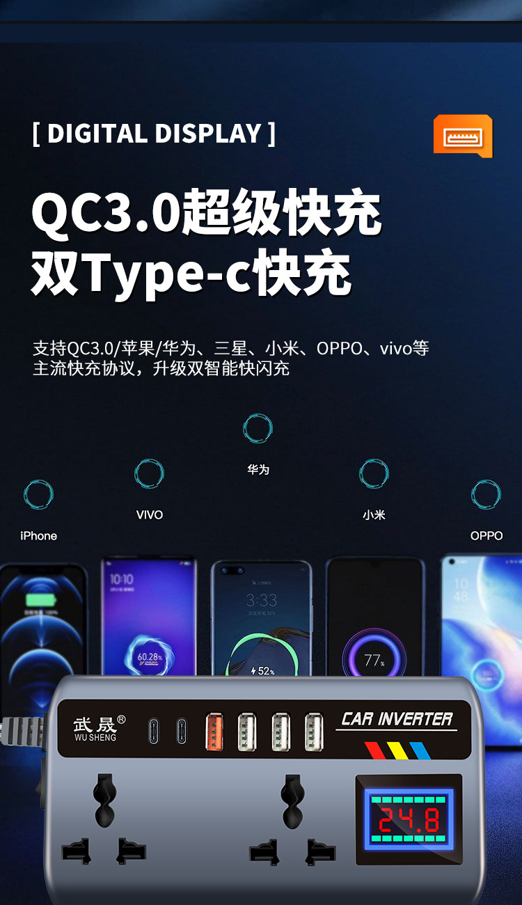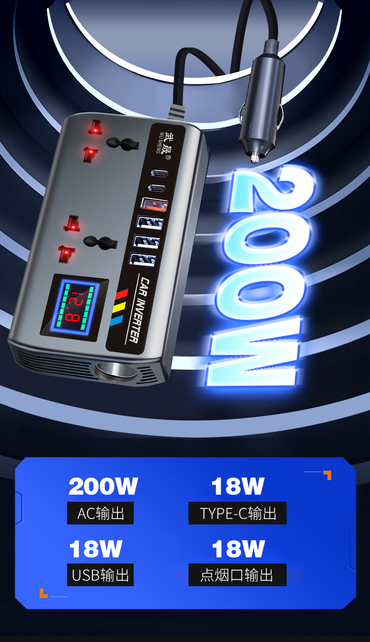 Автомобильный инвертор тип чашки 12V24V к 220V автомобильный грузовик универсальный преобразователь питания флэш-зарядное устройство