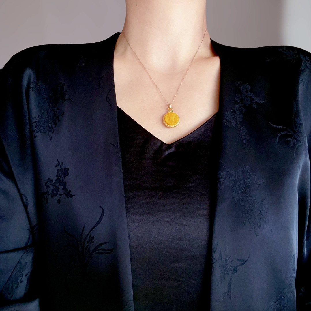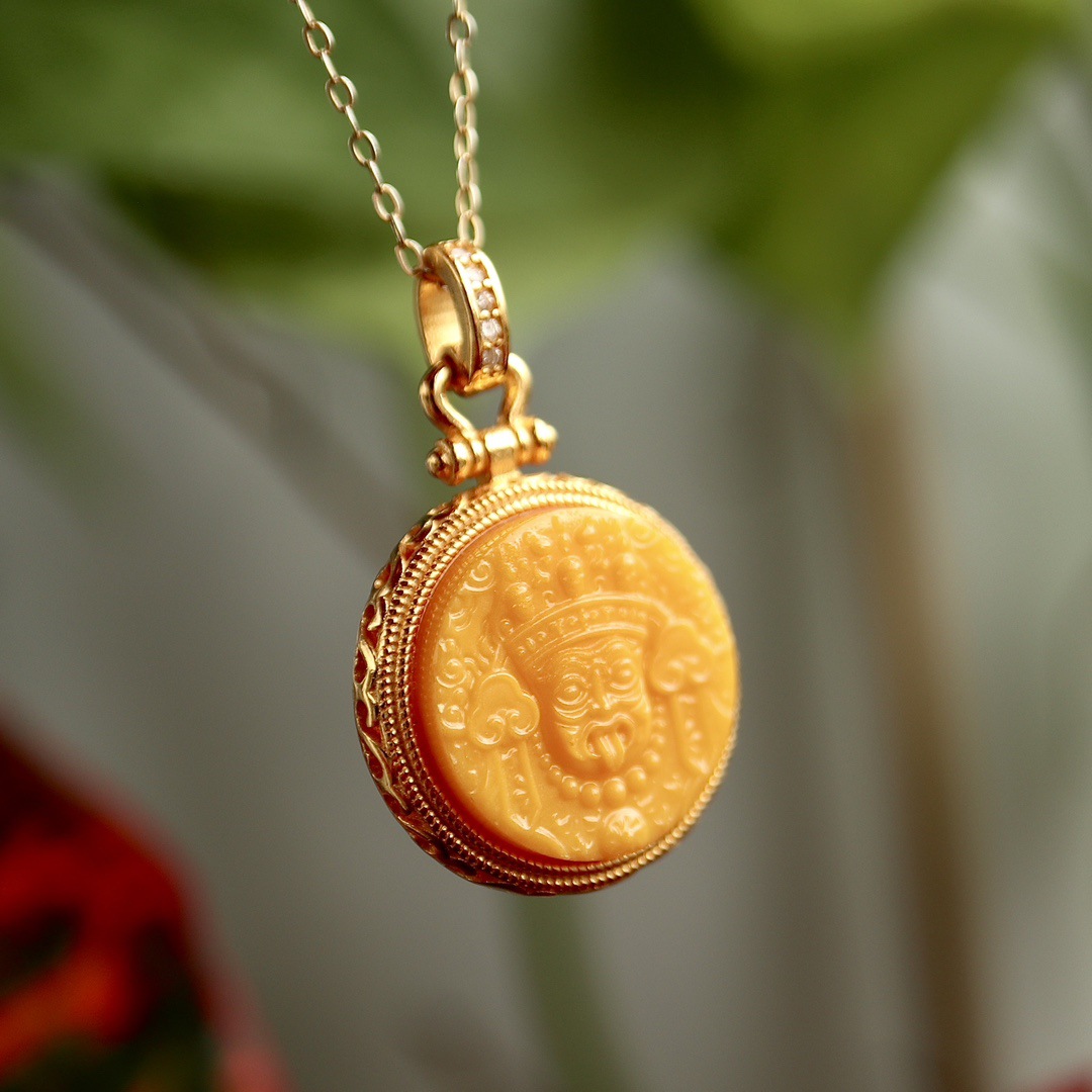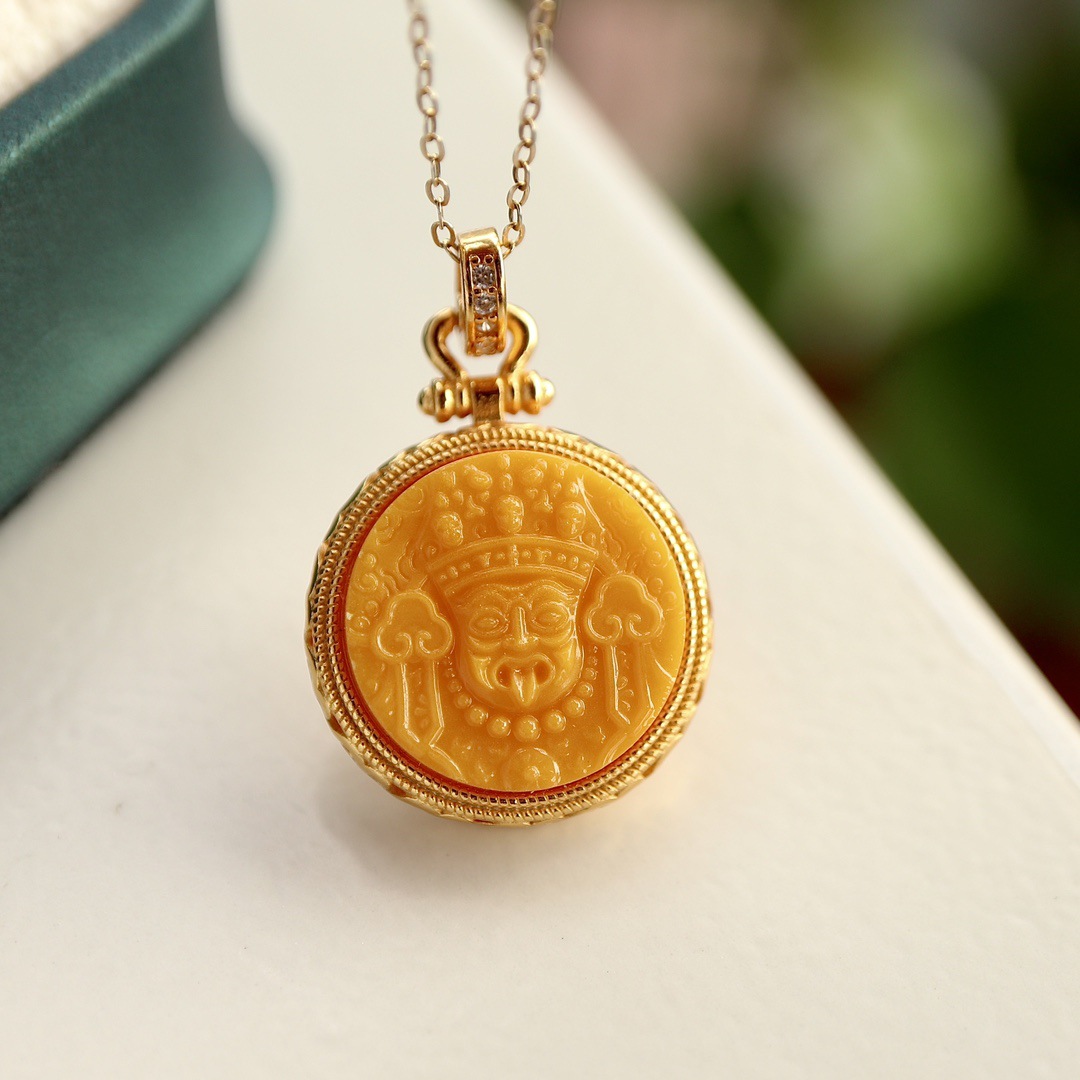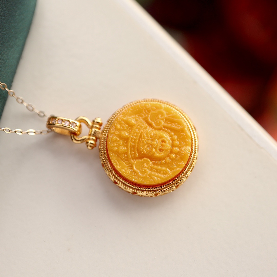 Натуральный старый медовый воск Zadi кулон леди маленький кулон один кусок гравировки один кулон истинный сертификат S925 стерлингового серебра