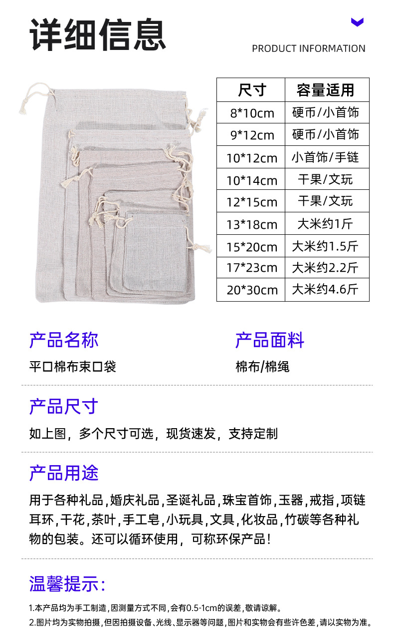 Трансграничные плоские хлопчатобумажные карманы для шнурок для хранения упаковочных мешков
