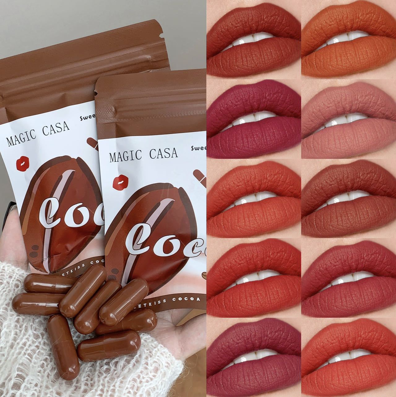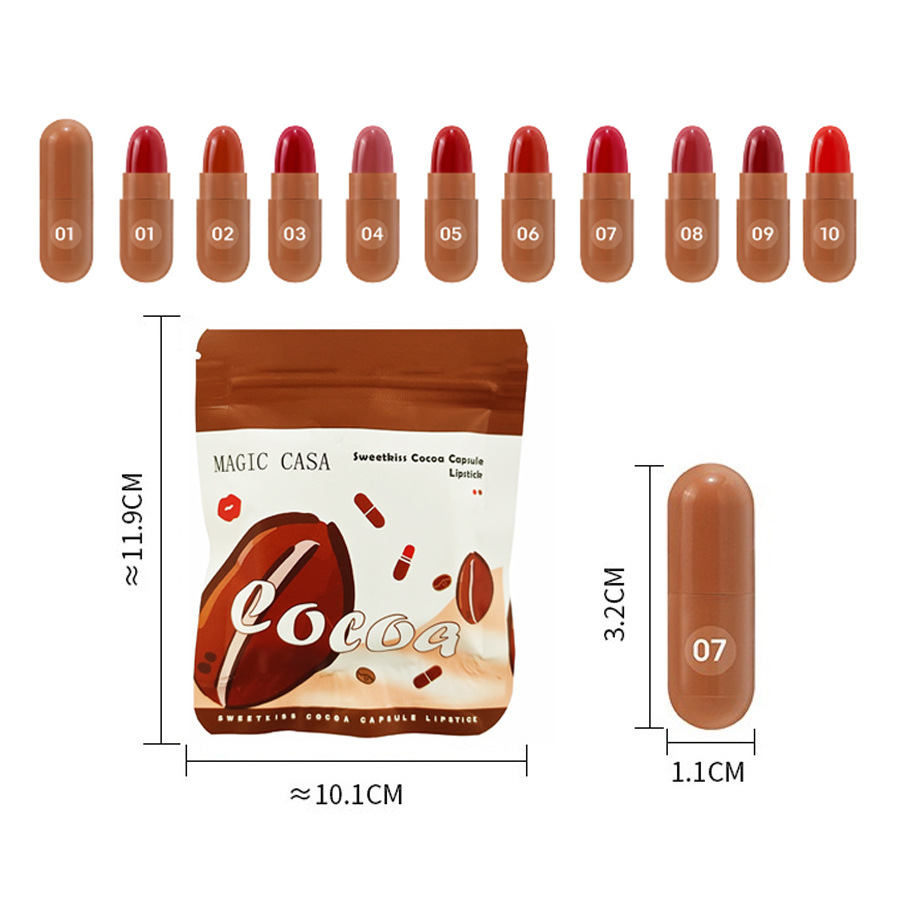 Оптовая продажа набора из 10 капсульных помад: водостойкий, стойкий, нелипкий бархатный блеск для губ для трансграничной торговли