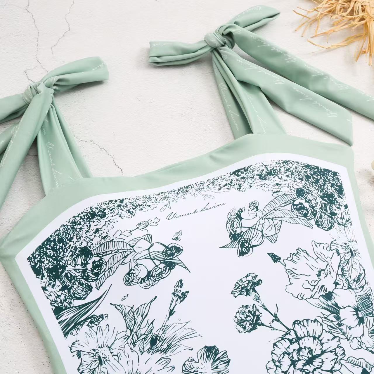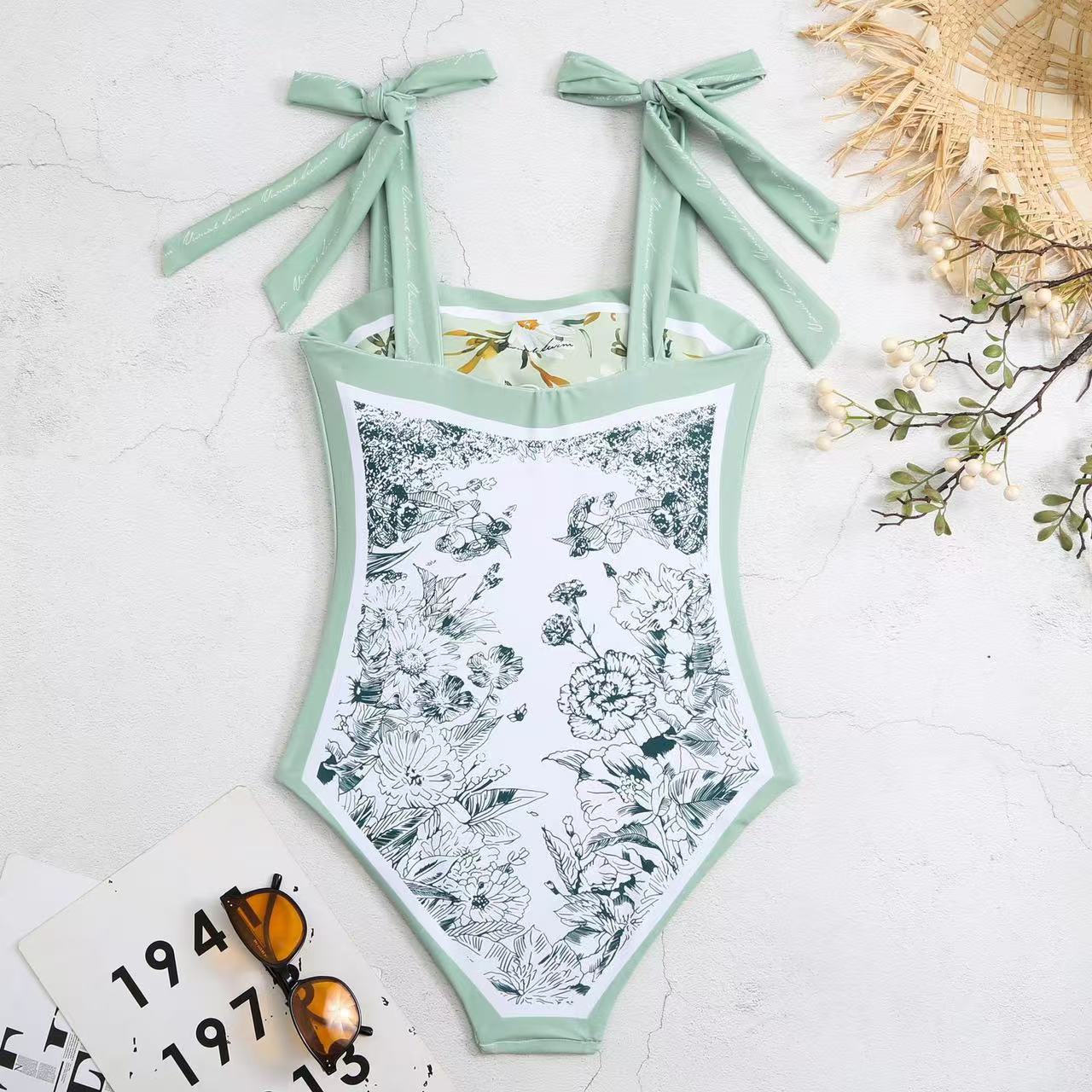 Трансграничный двухсторонний купальник с принтом в стиле ретро