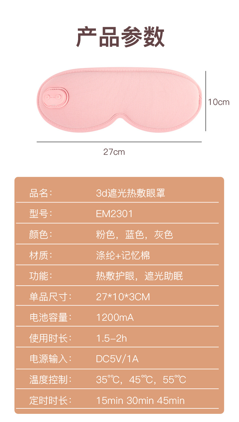 Индивидуальная 3D-маска для глаз для сна и тепловой терапии, многофункциональное устройство для защиты глаз, снимающее усталость глаз, модель с регулируемой температурой и паровым нагревом.