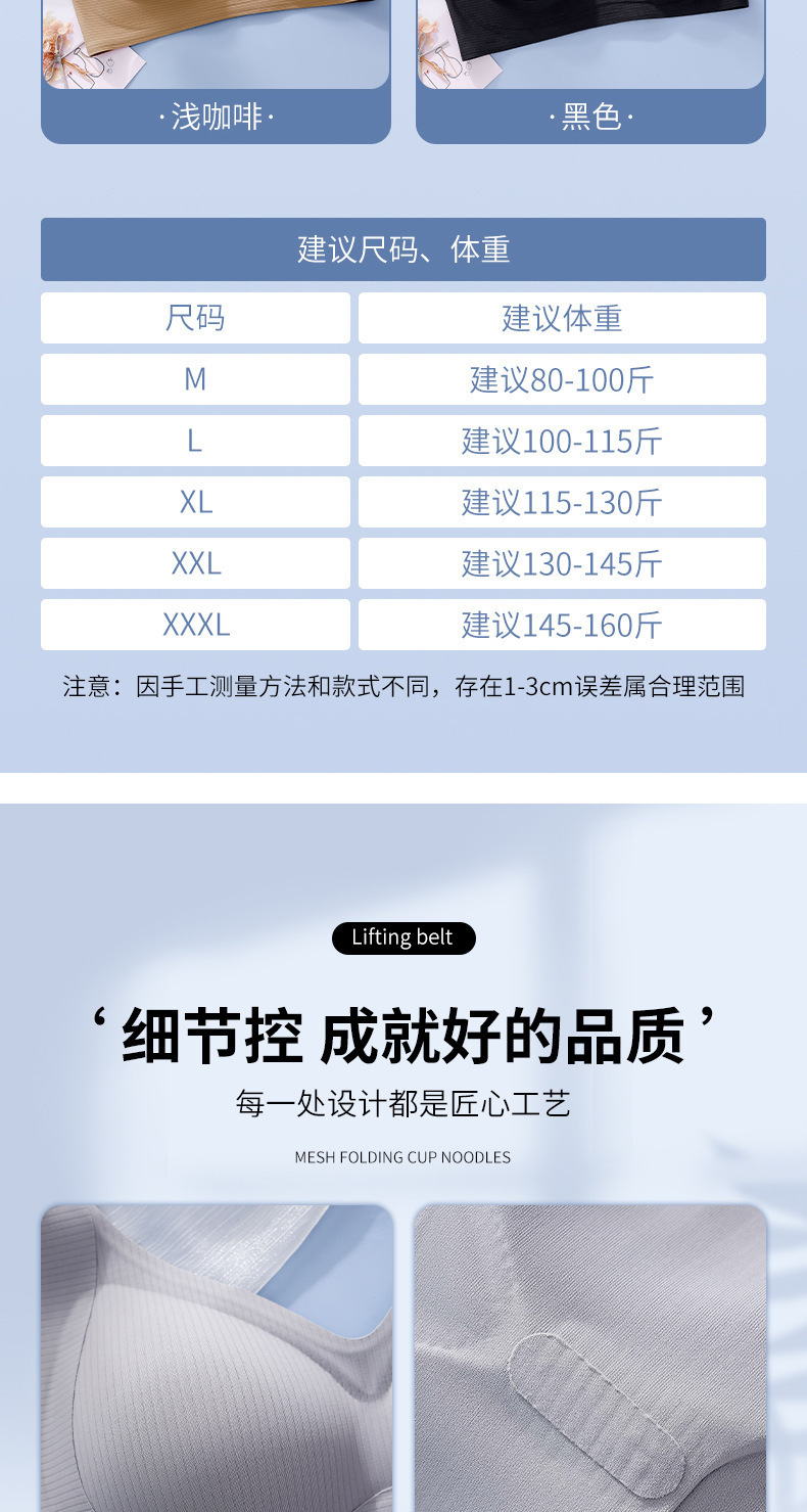 M [Подходит для 40-50kg 32/70ABC]; L [подходит для 50-57.5kg 34/75ABC]; XL [подходит для 1 154-65kg 36/80ABC]; 2XL [подходит для 65-72.5kg 38/85ABC]; 3XL [подходит для 72.5-80kg 40/90ABC]