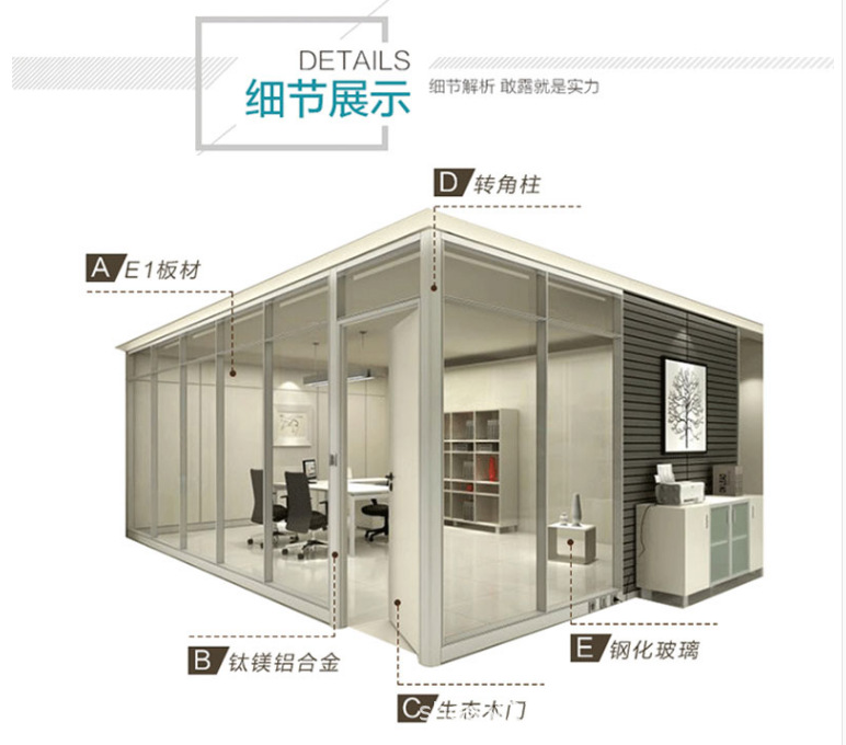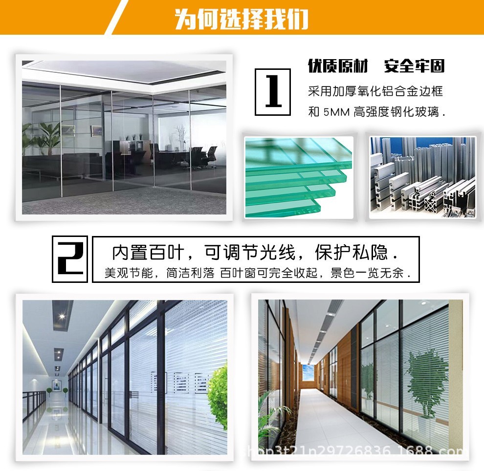 Офисное стекло перегородки стены Современный минималистский алюминиевый сплав Высокие жалюзи двойные закаленное офисное стекло перегородки