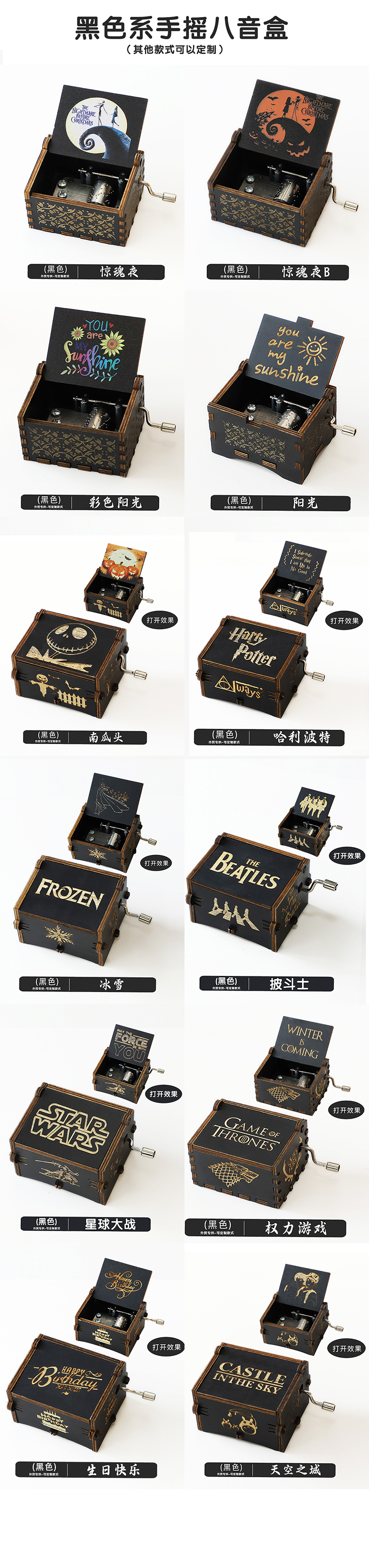 Деревянная ручная музыкальная шкатулка Ретро резная деревянная звуковая коробка цветная печать трансграничный подарок на день рождения