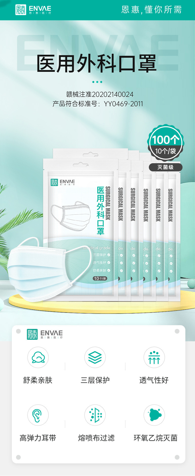 Медицинская медицинская хирургическая маска Enhui Одноразовая медицинская стерилизация Три слоя защиты для взрослых 10 штук синий ультратонкий