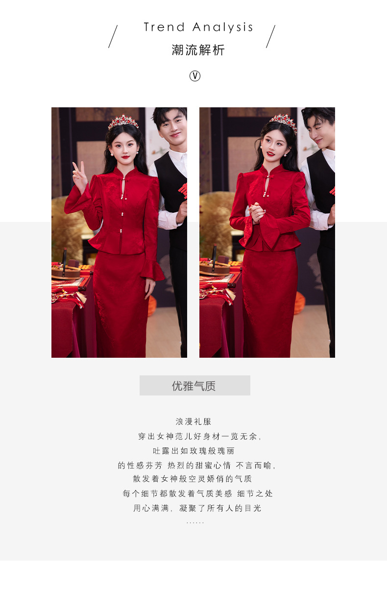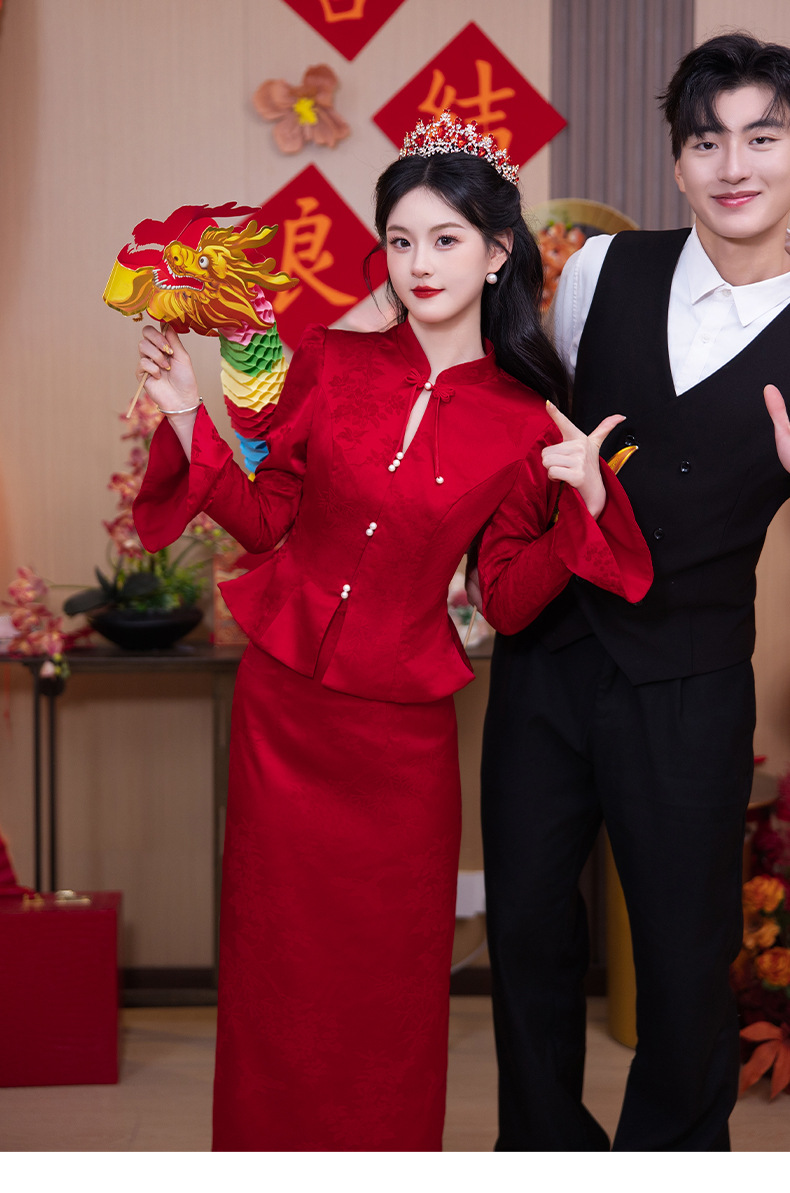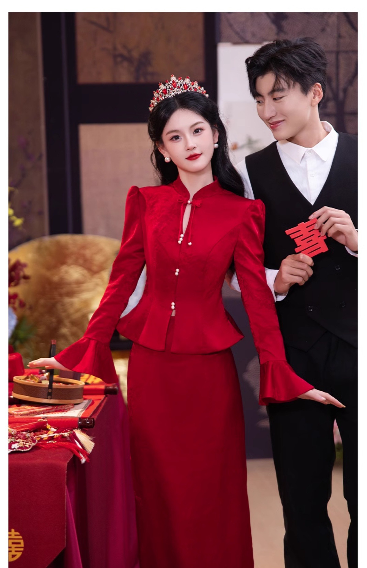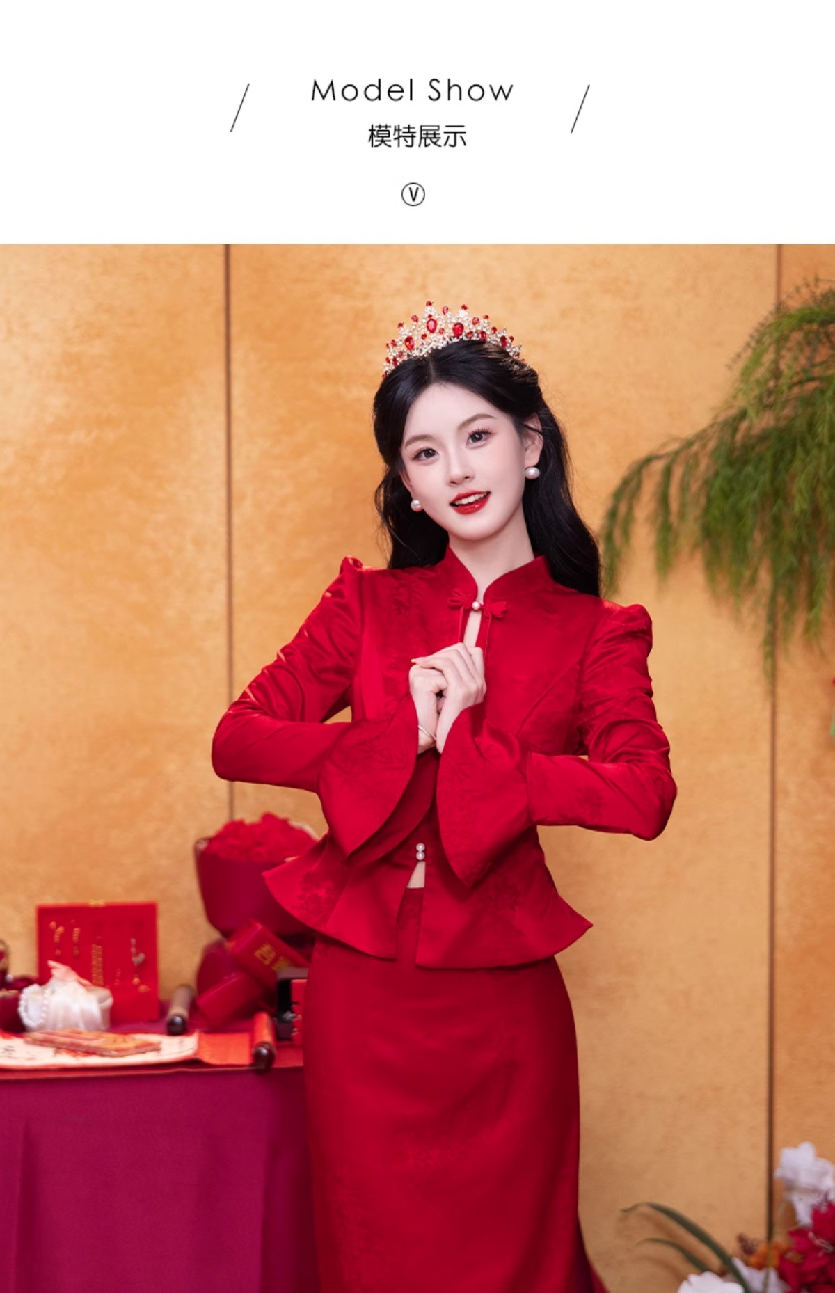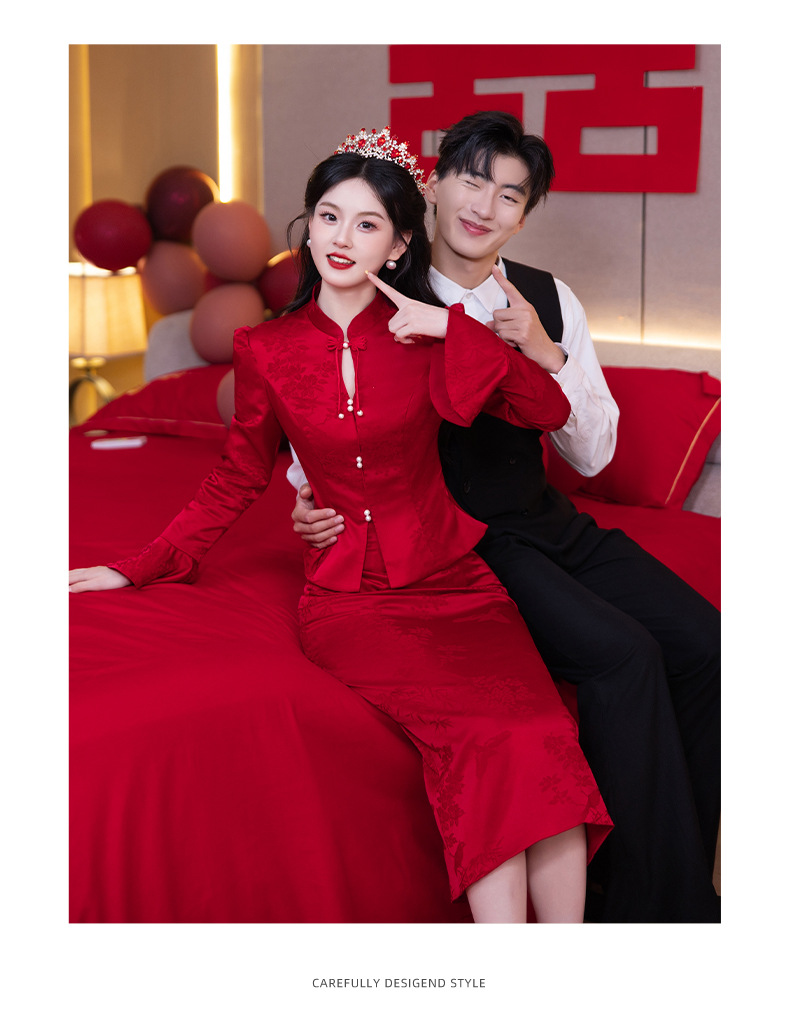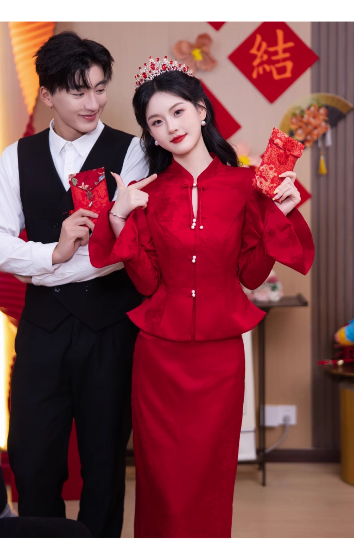 Платье-ципао для невесты невысокого роста, красное свадебное платье для помолвки, новый свадебный костюм в китайском стиле, весеннее платье с длинным рукавом