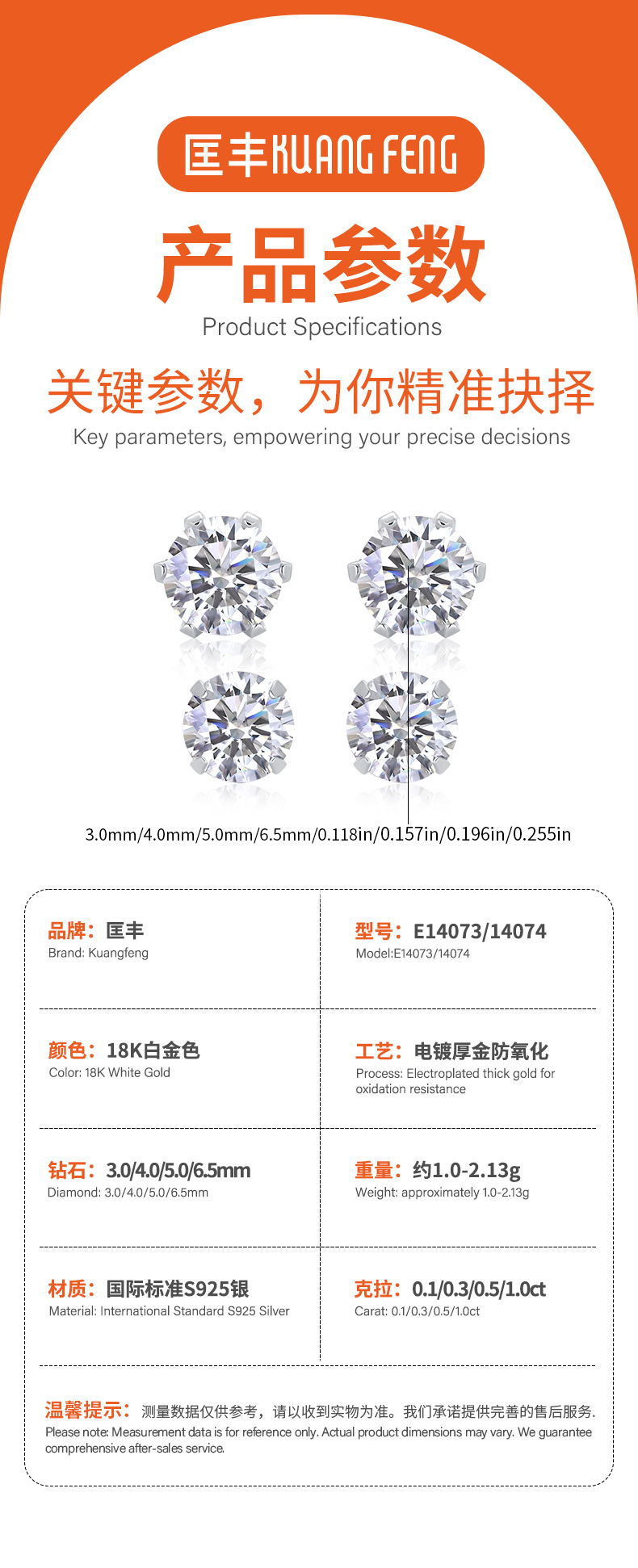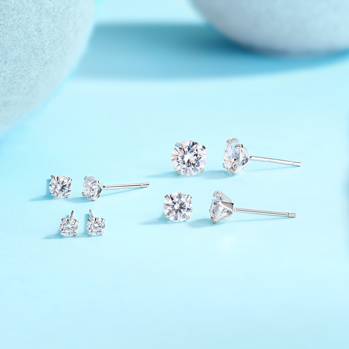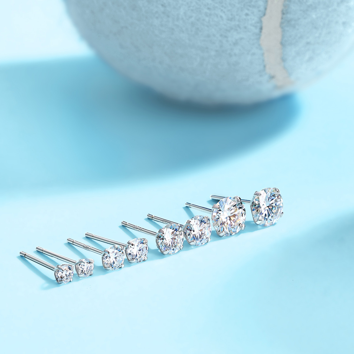 Пара муассанитов 3 мм [серебро 925 пробы]; 30-точечный муассанит, пара 4 мм [серебро 925 пробы]; 50 минут муассанит 5 мм пара [925 стерлингового серебра]; 1 карат муассанит 6,5 мм пара [925 стерлингового серебра]