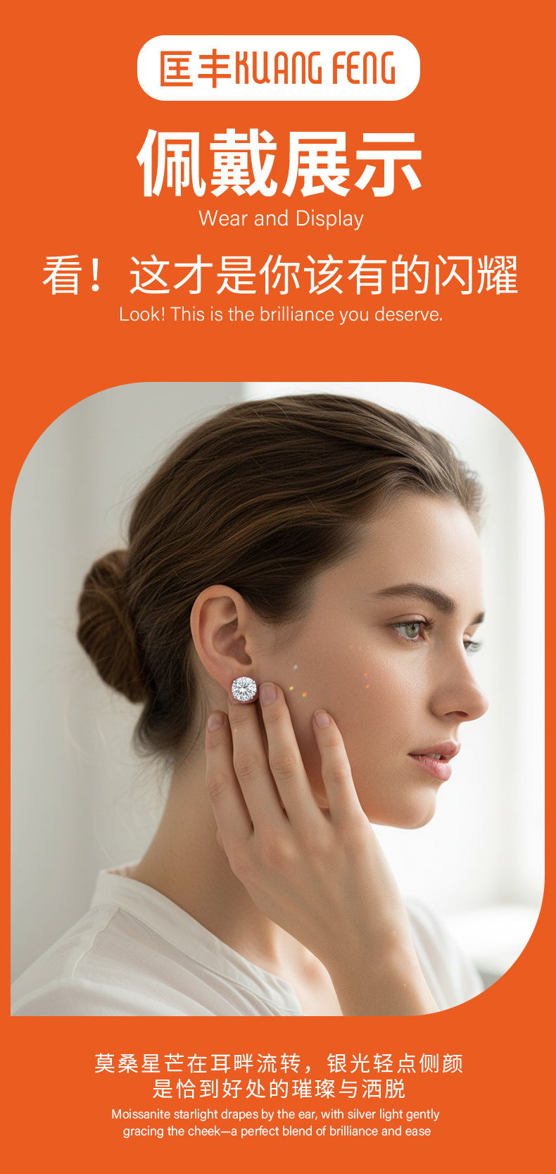 Роскошные сверкающие серьги с муассанитом для трансграничной торговли на Amazon: длинные серьги-каффы и серьги-гвоздики из стерлингового серебра.