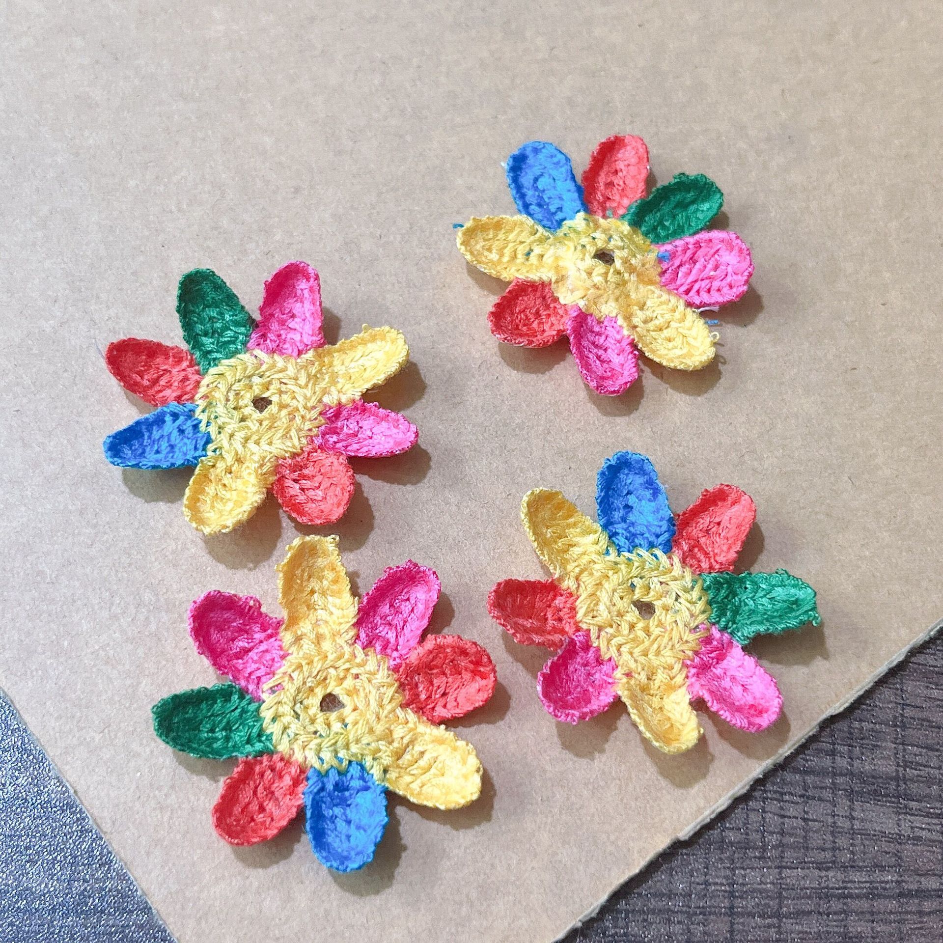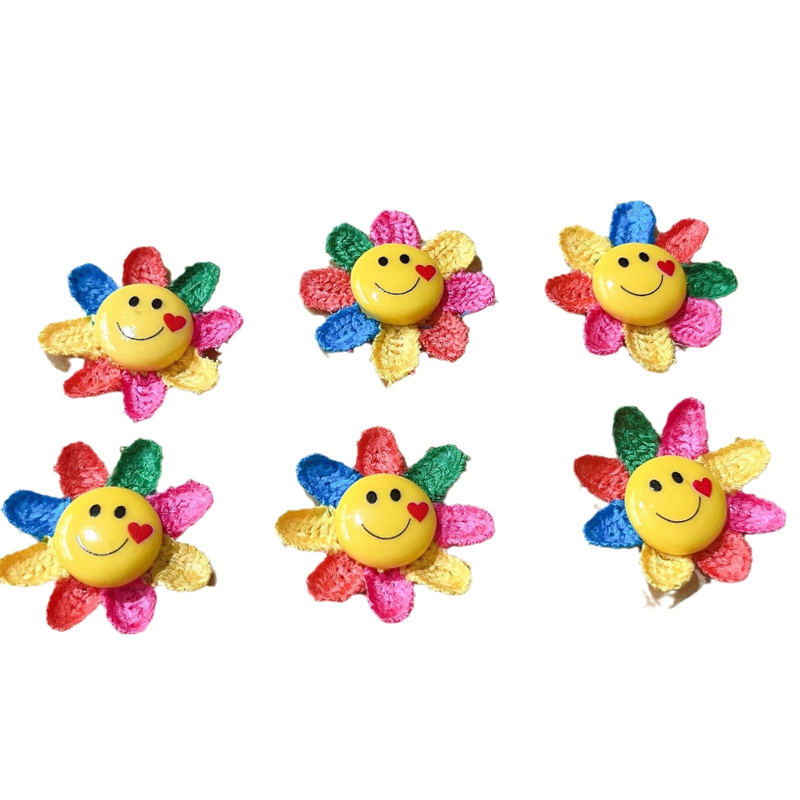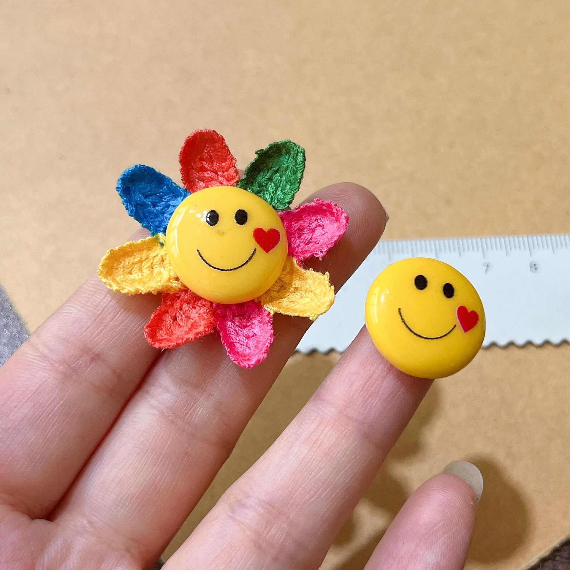 1#Красочные аксессуары для лица со смайликом своими руками; 2#Желтые аксессуары Love Smiley-DIY; 3#Вязаные разноцветные цветы-аксессуары своими руками