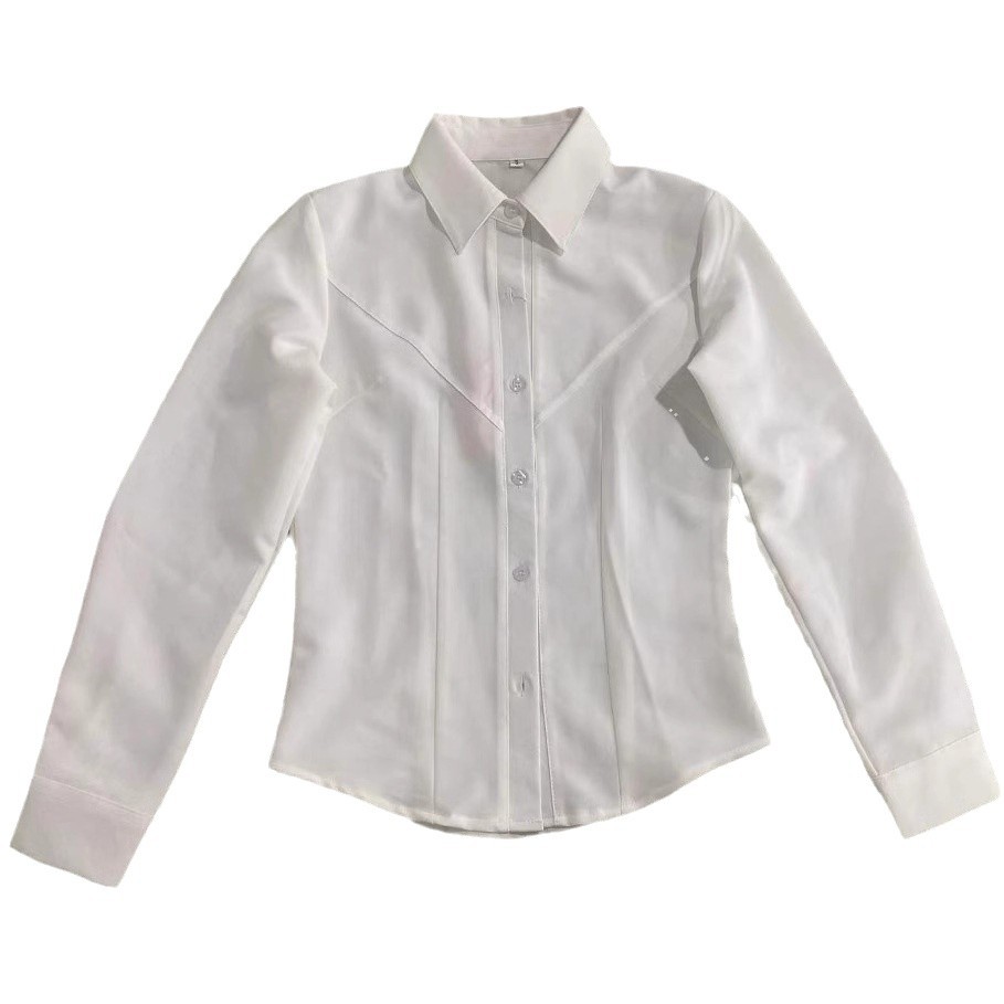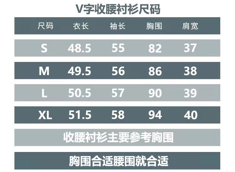 V字衬衫采用优质面料,为修身款,有腰身。