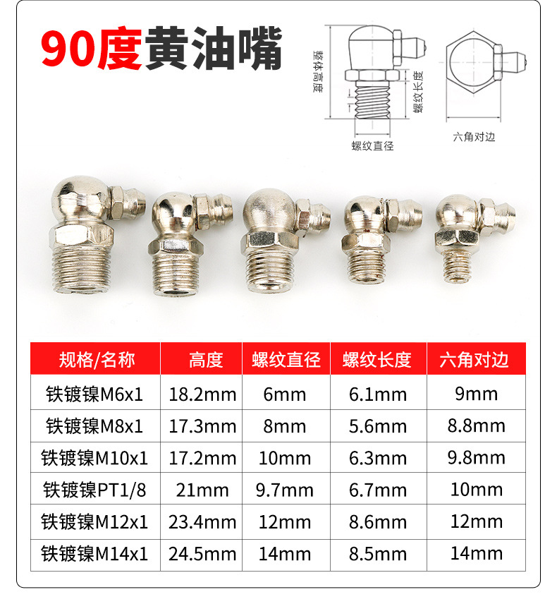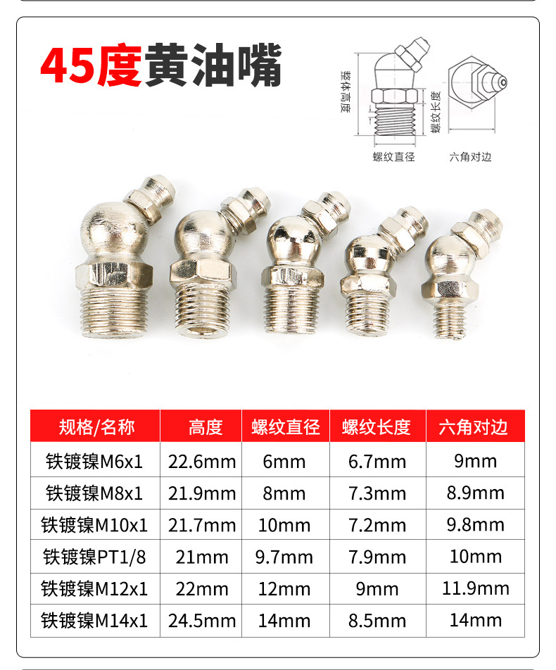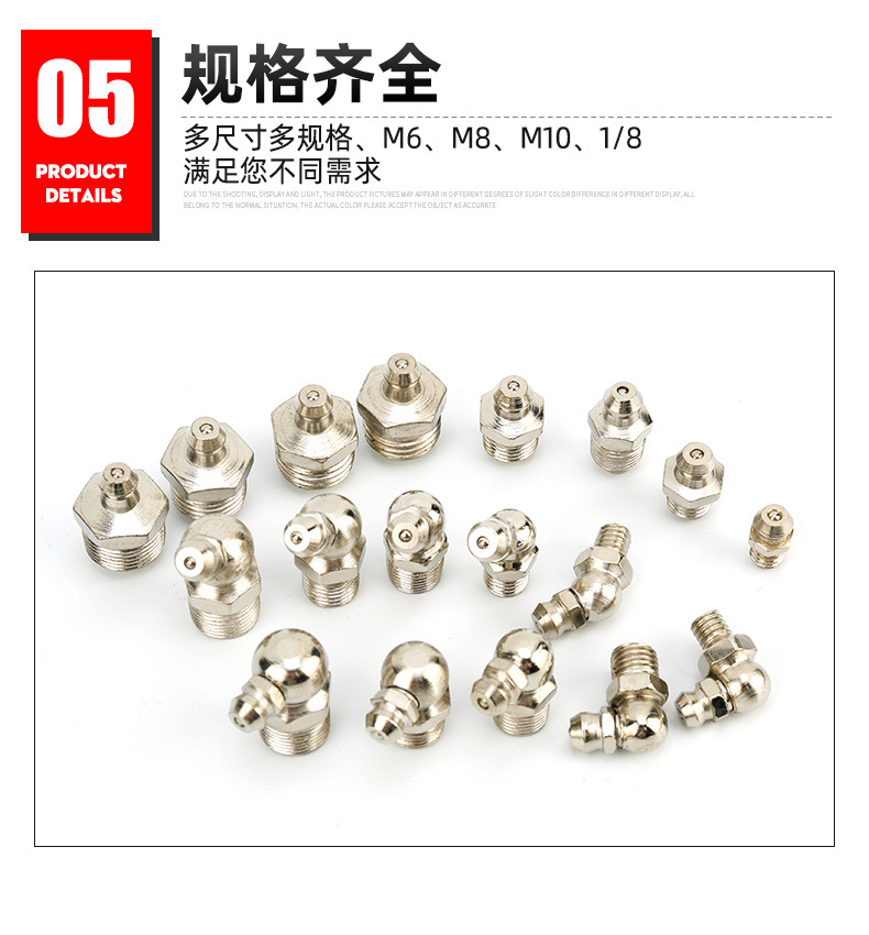 Никелированный M6X1 прямой рот; Никелирование M6X1 90 градусов; Никелированный M6X1 45 градусов; Никелированный M8X1 прямой рот; Никелирование M8X1 90 градусов; Никелирование M8X1 45 градусов; Никелированный M10X прямой рот (1/8); Никелирование M10X90 градусов (1/8); Никелирование M10X45 градусов (1/8); Никелированный M12X1 прямой рот; Никелирование M12X1 90 градусов; Никелирование M12X1 45 градусов; Никелированный M13X1.5 прямой рот; Никелированный M14X1 прямой рот; Никелированный M14X1.5 прямой рот; Никелированный M10X1 прямой рот; Никелированный M10x1 90 градусов; Никелированный M10 x 1 45 градусов