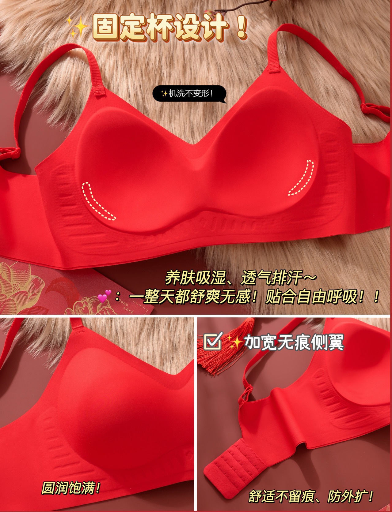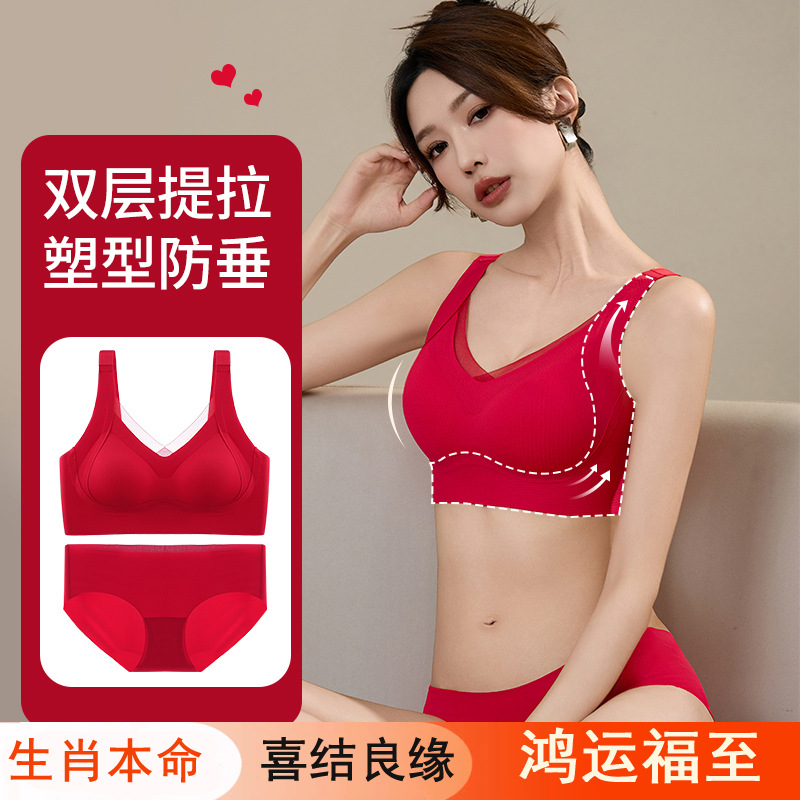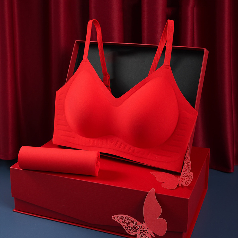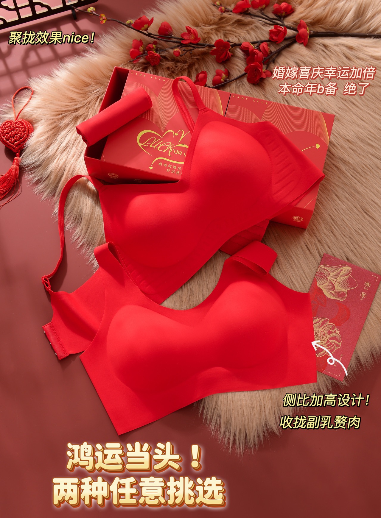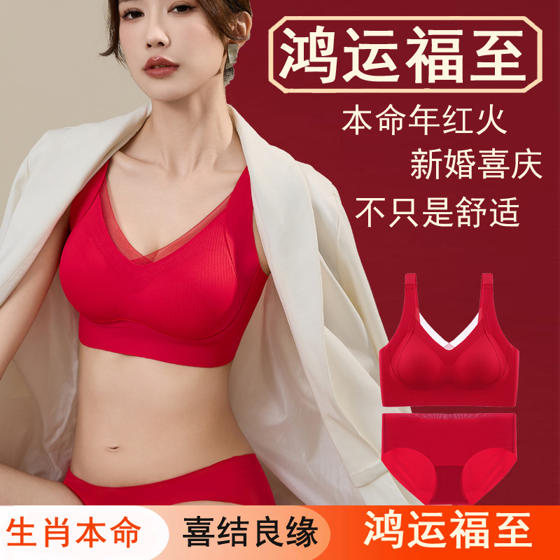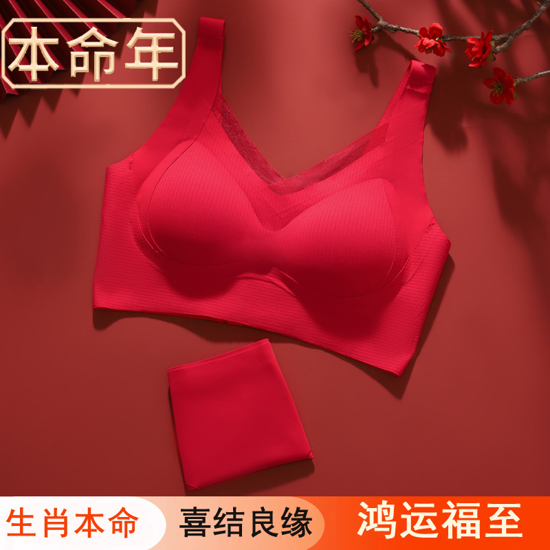 Бесшовное нижнее белье Zodiac Year для женщин, Год Лошади, с эффектом пуш-ап для небольшой груди, без косточек, праздничный красный комплект бюстгальтера и трусиков