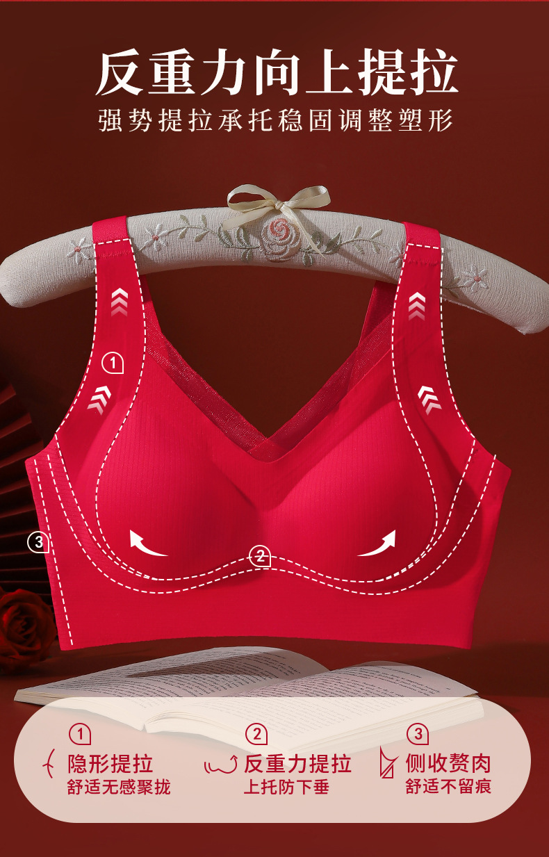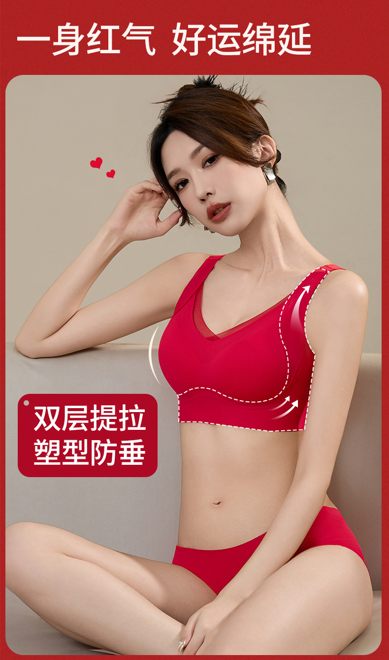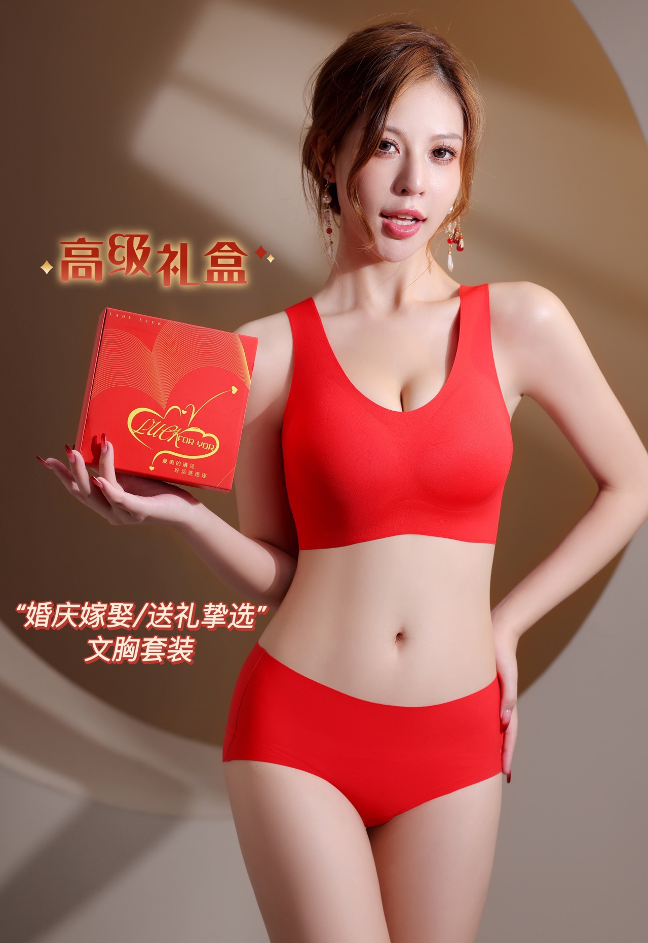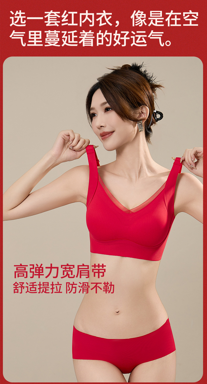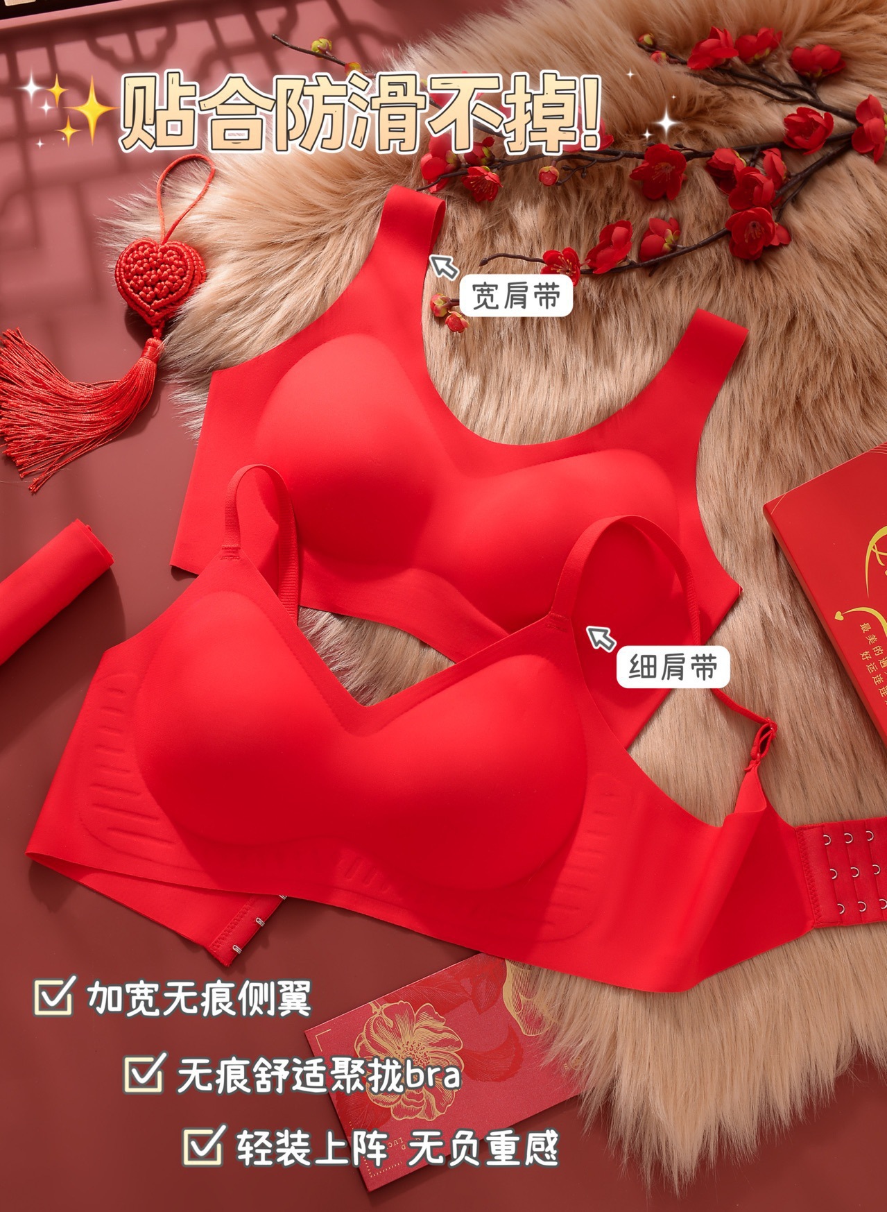 Бесшовное нижнее белье Zodiac Year для женщин, Год Лошади, с эффектом пуш-ап для небольшой груди, без косточек, праздничный красный комплект бюстгальтера и трусиков