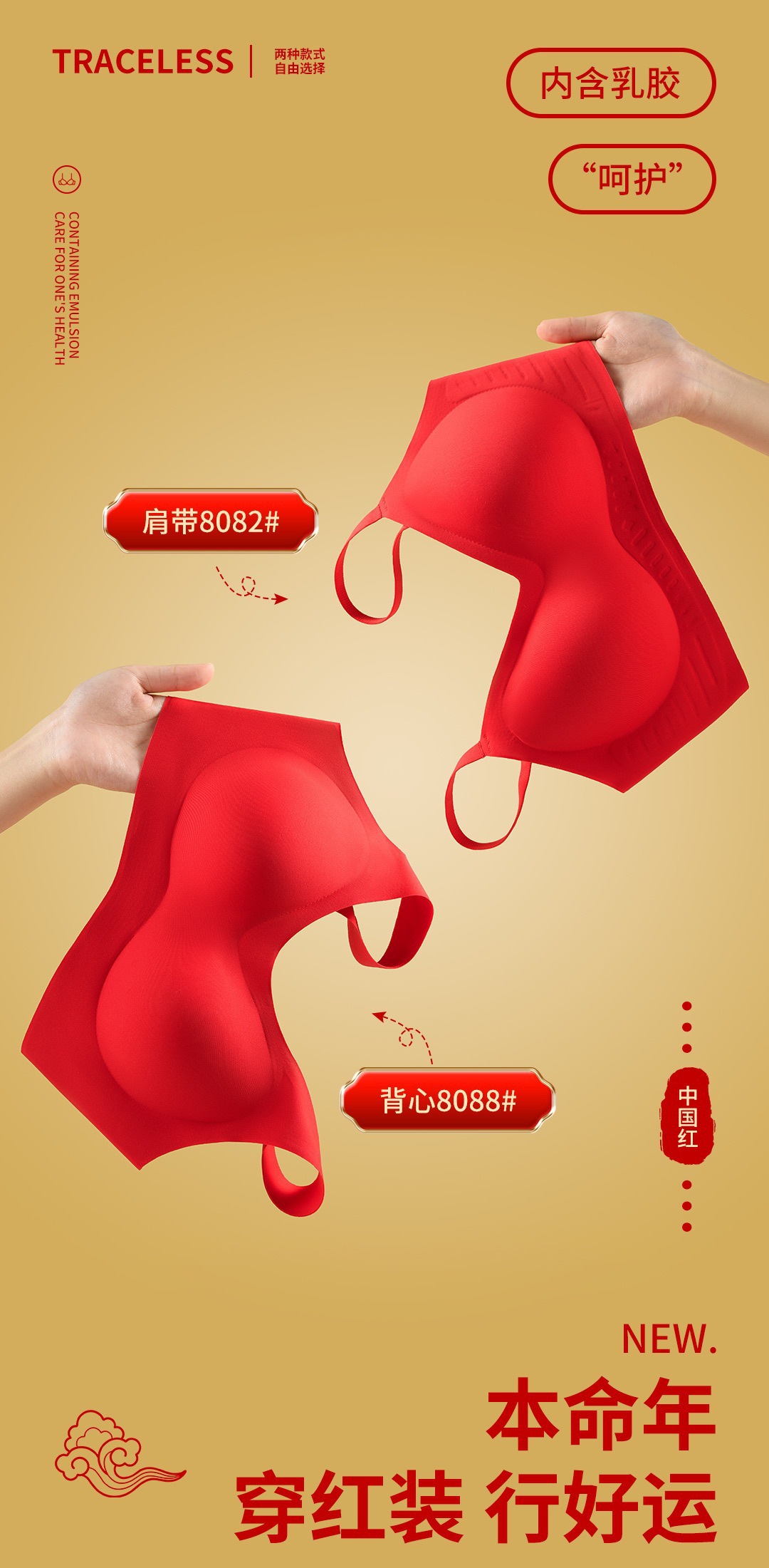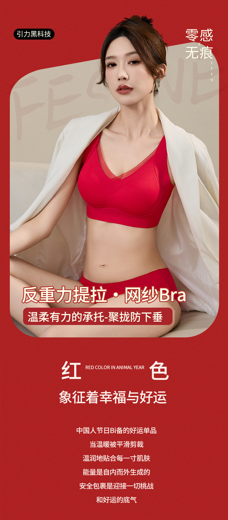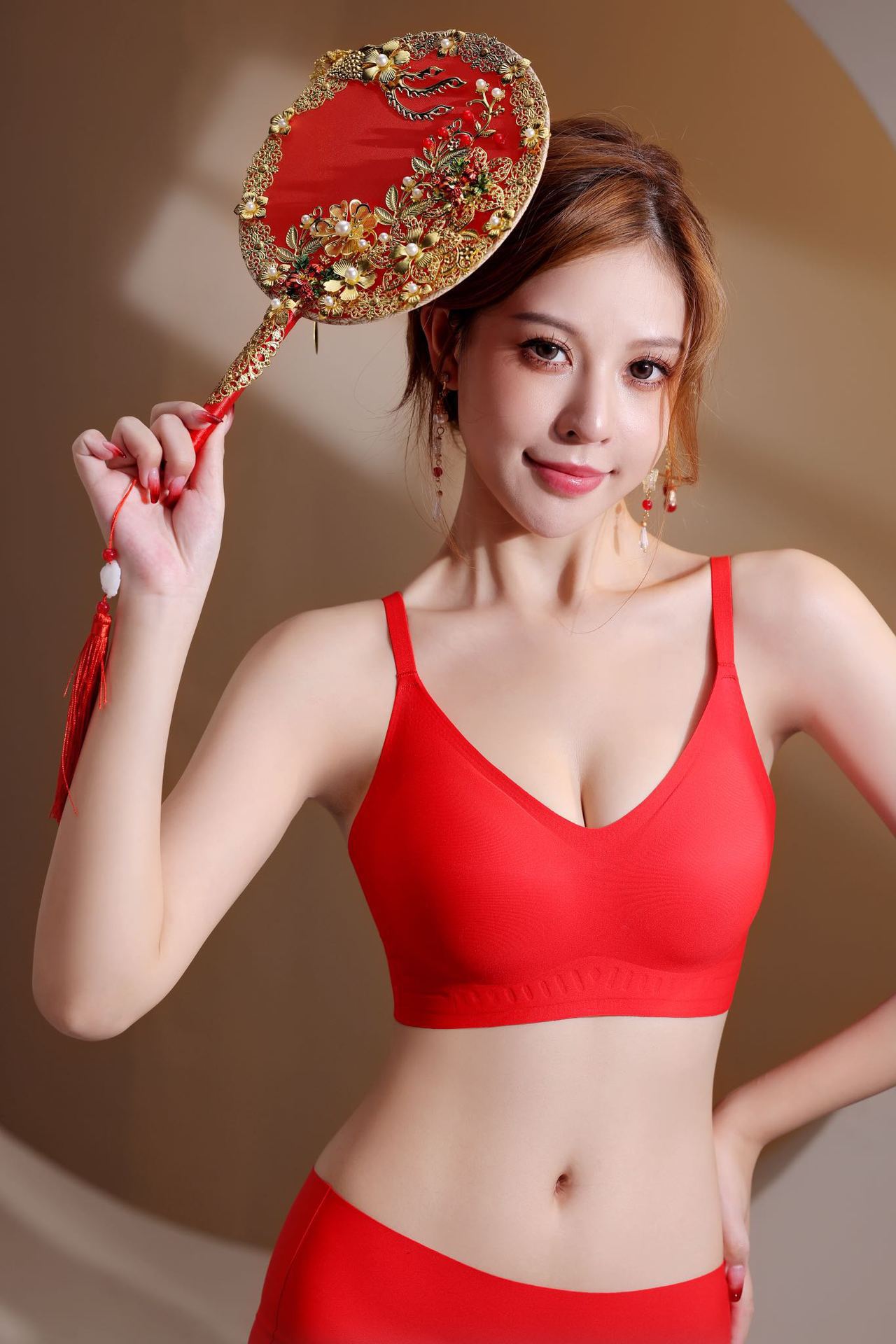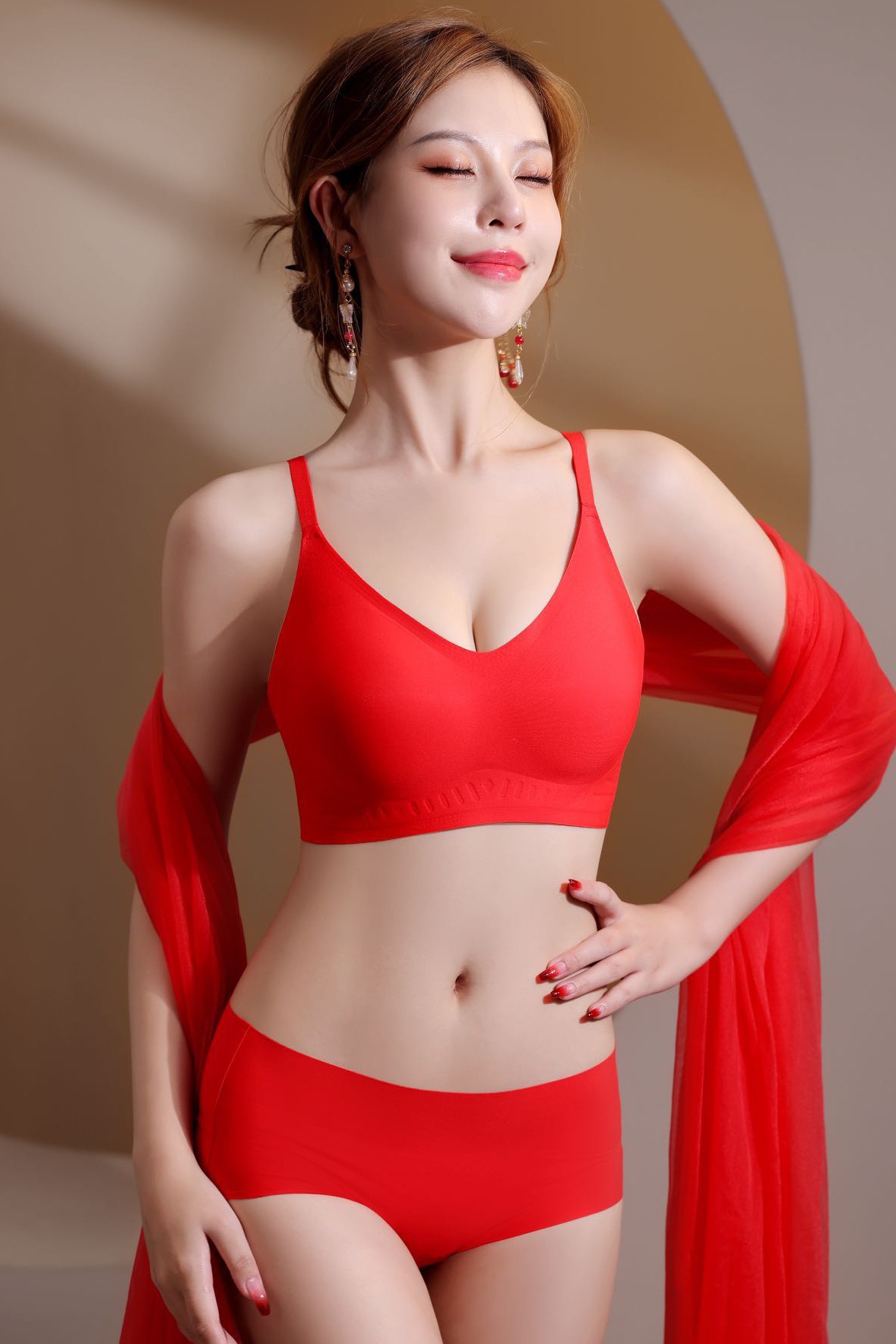Бесшовное нижнее белье Zodiac Year для женщин, Год Лошади, с эффектом пуш-ап для небольшой груди, без косточек, праздничный красный комплект бюстгальтера и трусиков