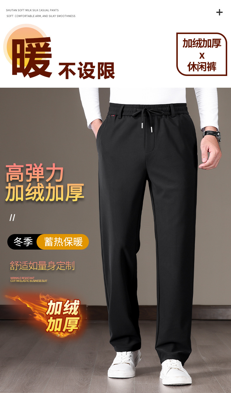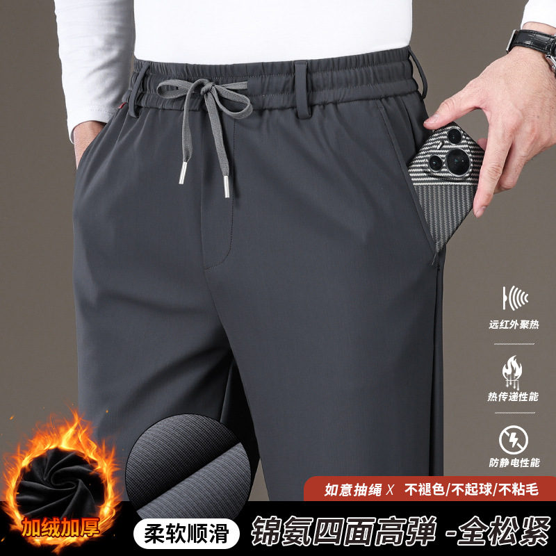 Мужские брюки среднего возраста 2024 осень и зима эластичные брюки мужские эластичные бархатные толстые спортивные повседневные длинные брюки