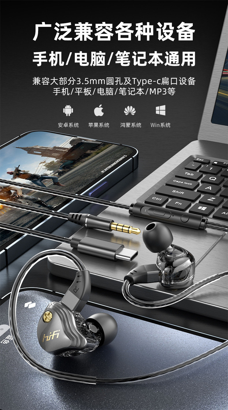 Трансграничные новые проводные наушники-вкладыши подходят для Huawei Apple Samsung мобильный телефон с бас TYPEC/3.5MM