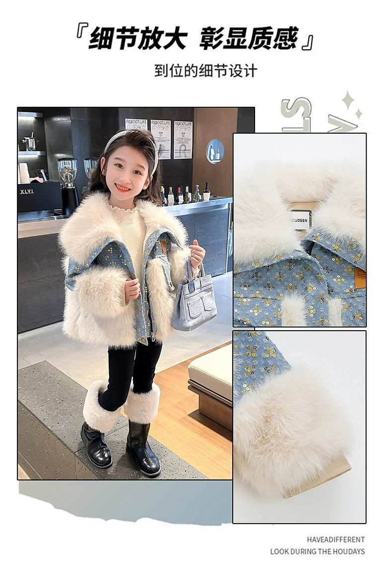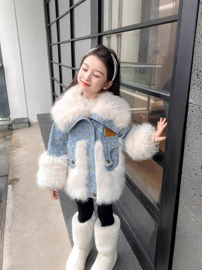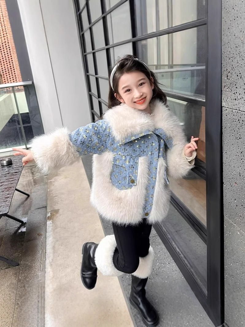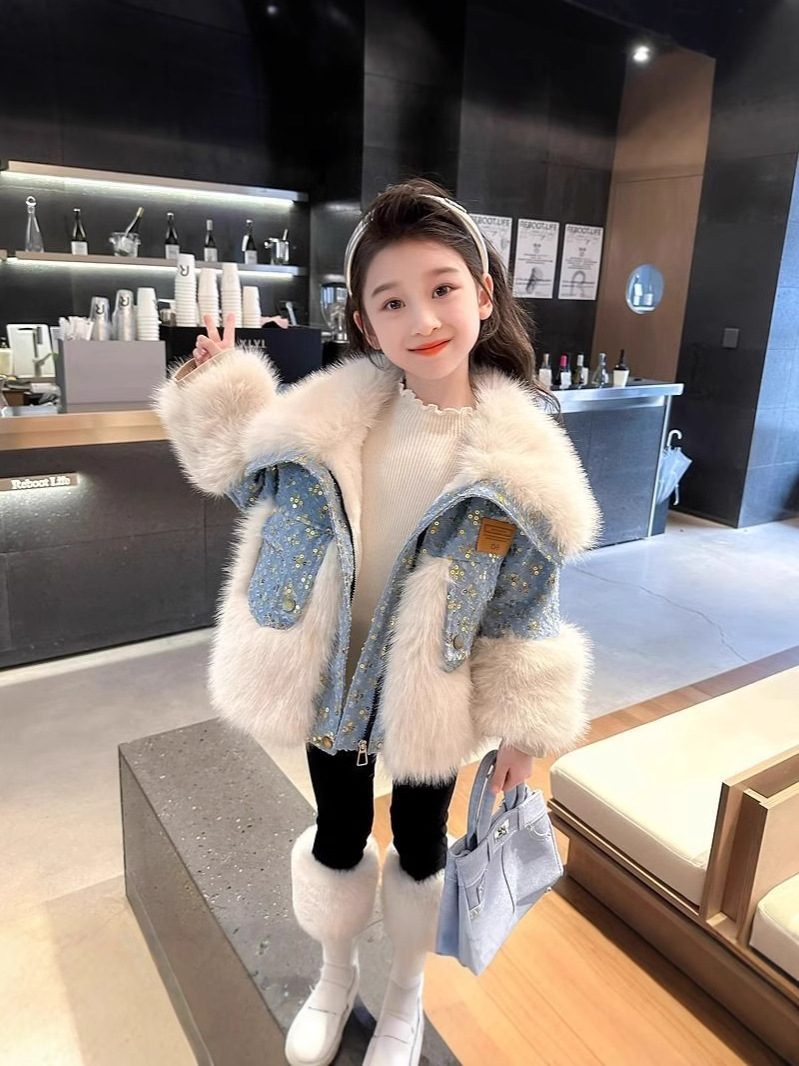 Детская джинсовая куртка на меху, утепленная, осенне-зимняя коллекция 2024, новинка, детская хлопковая одежда, зимняя мода для малышей.