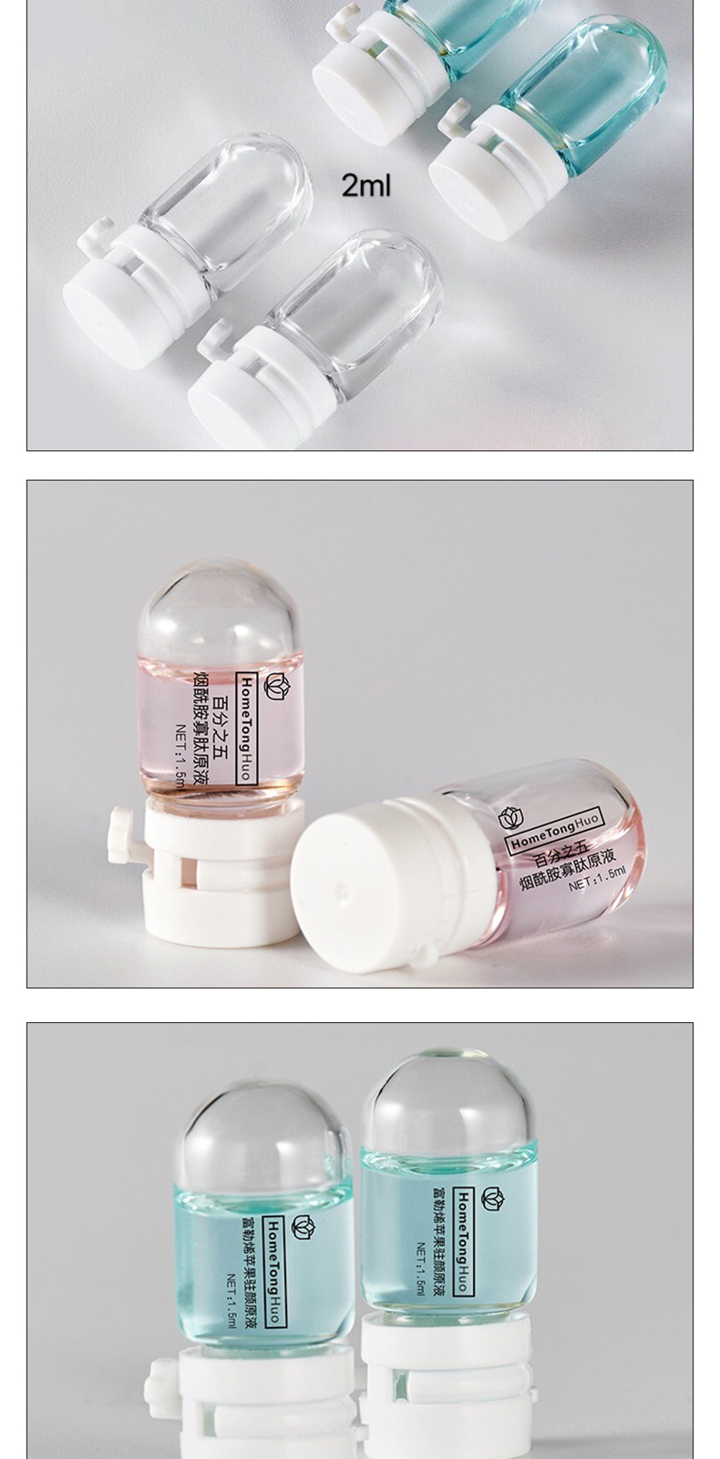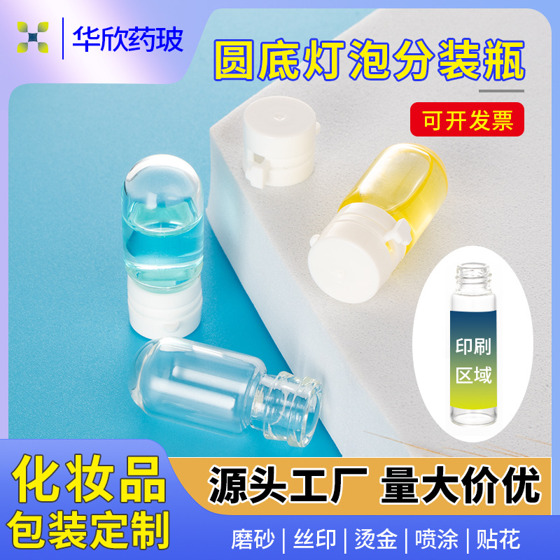 Бутылочка с круглым дном и двойной винтовой крышкой для эфирных масел, парфюмерии и косметических пробников, стеклянная бутылочка объемом 2-5 мл для сыворотки.