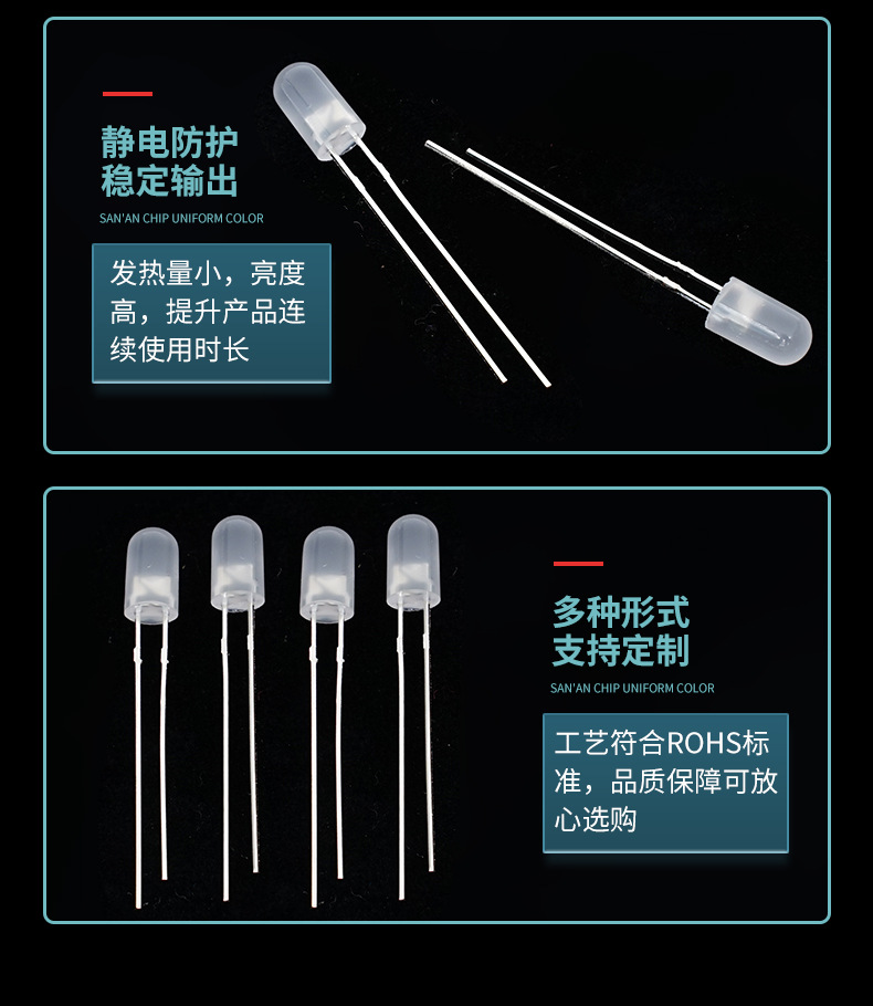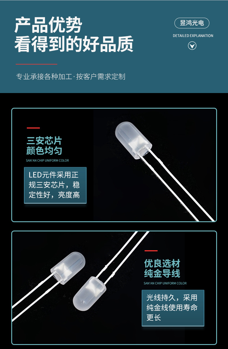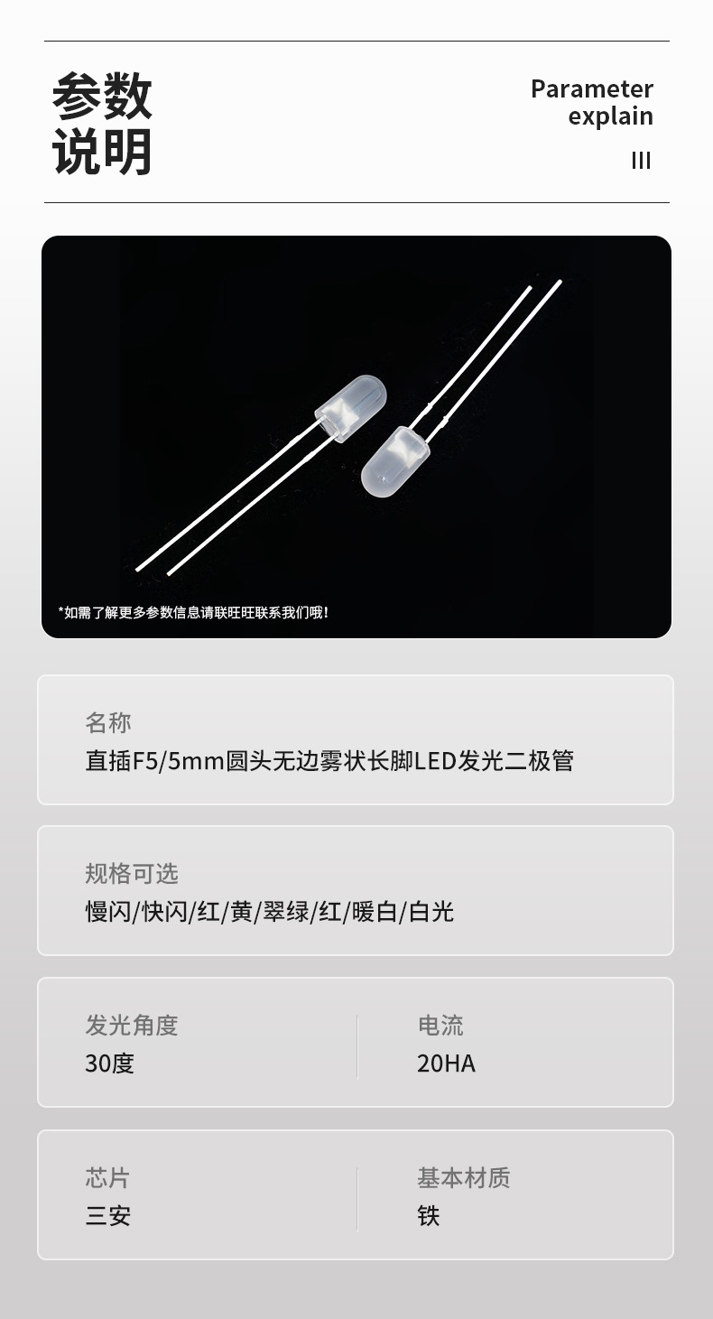 Круглая головка F5/5 мм с противотуманной кромкой RGB, красочная, медленная вспышка, короткие ножки