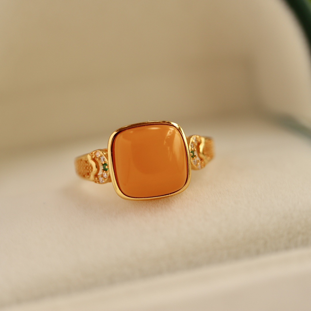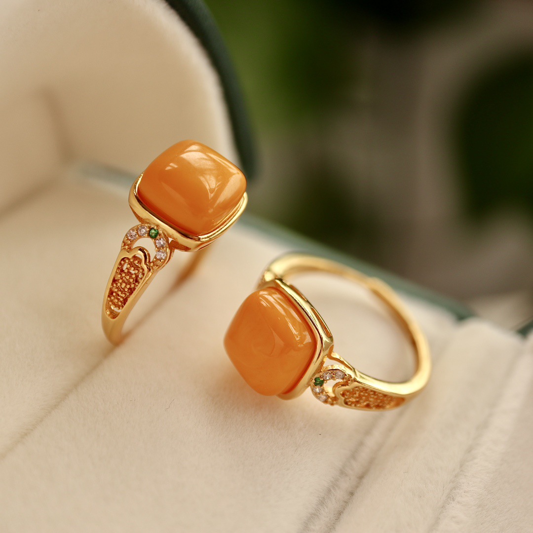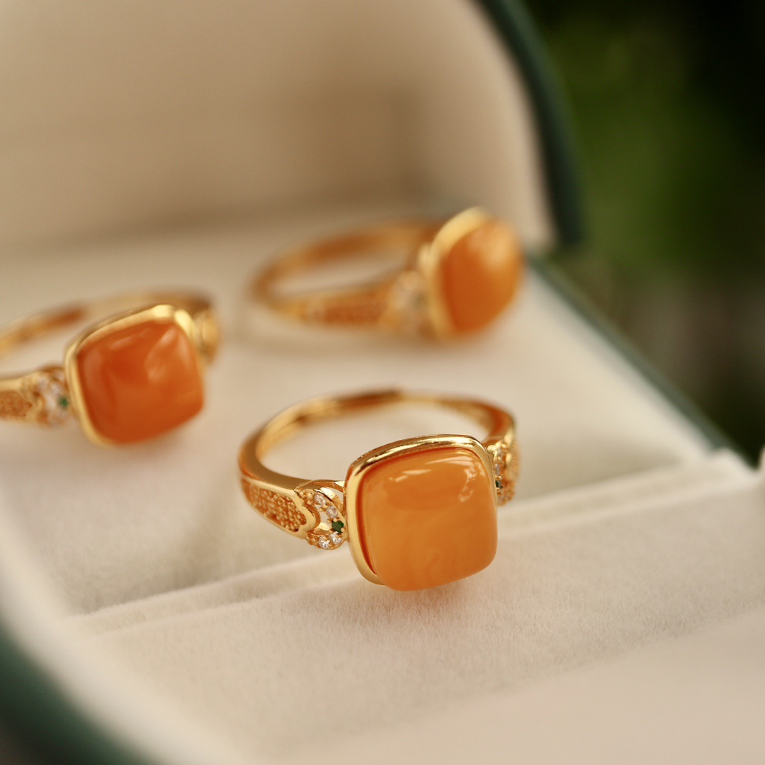 Натуральный старый медовый воск кольцо 925 стерлингового серебра