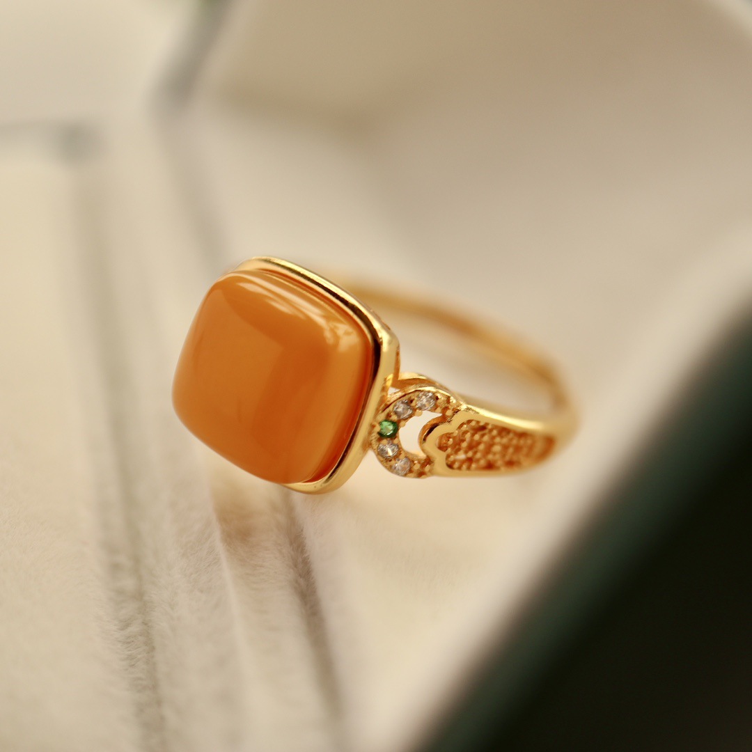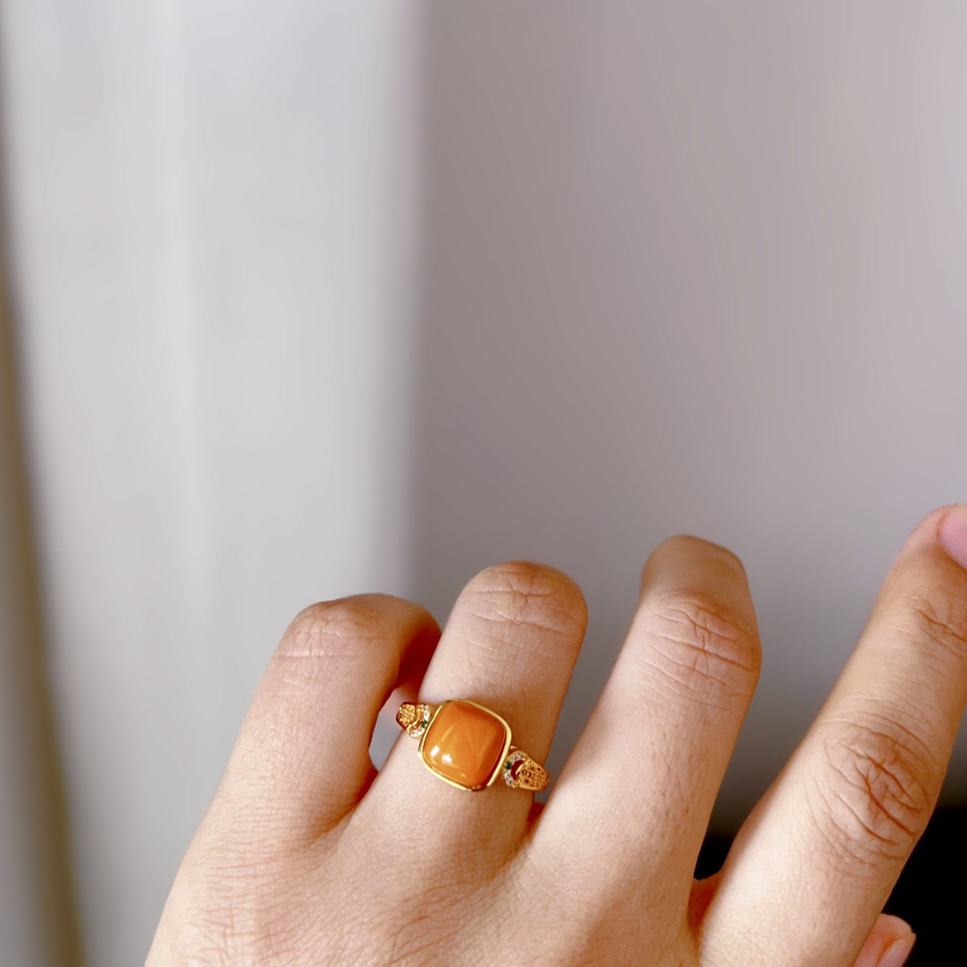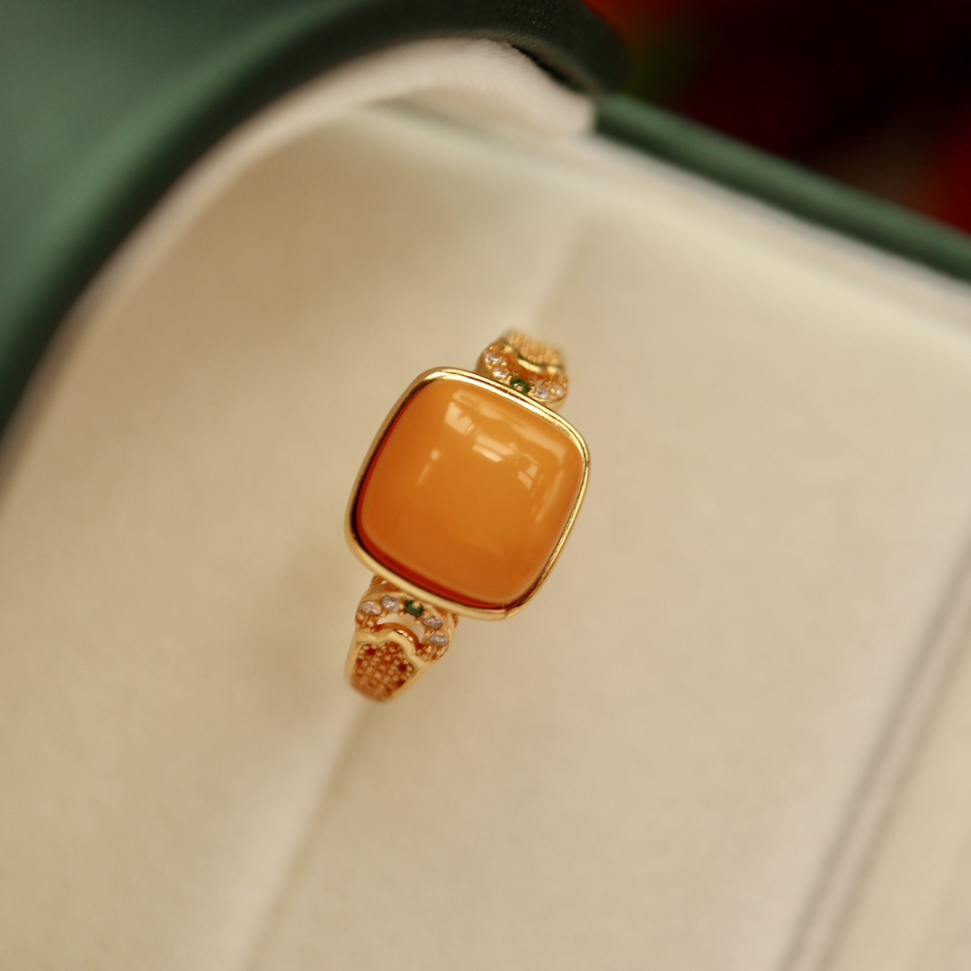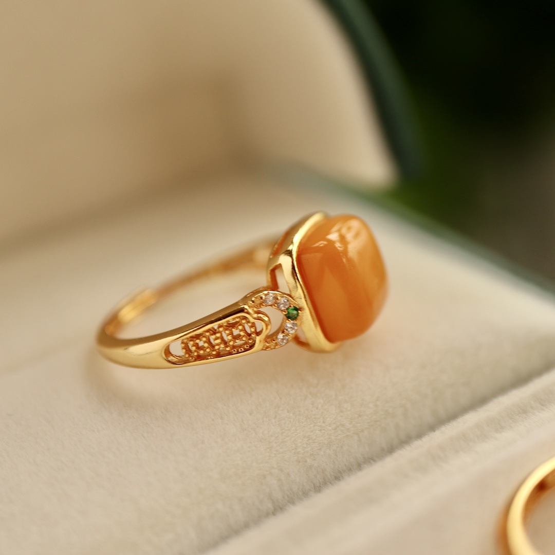 Натуральный старый медовый воск кольцо 925 стерлингового серебра