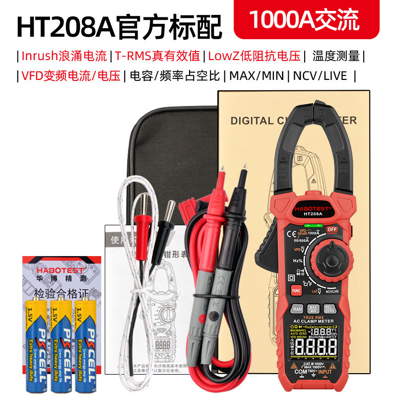 HABOTEST/Huabo HT208A/D AC Цифровой 1000A Многофункциональный антигоревший мультиметр
