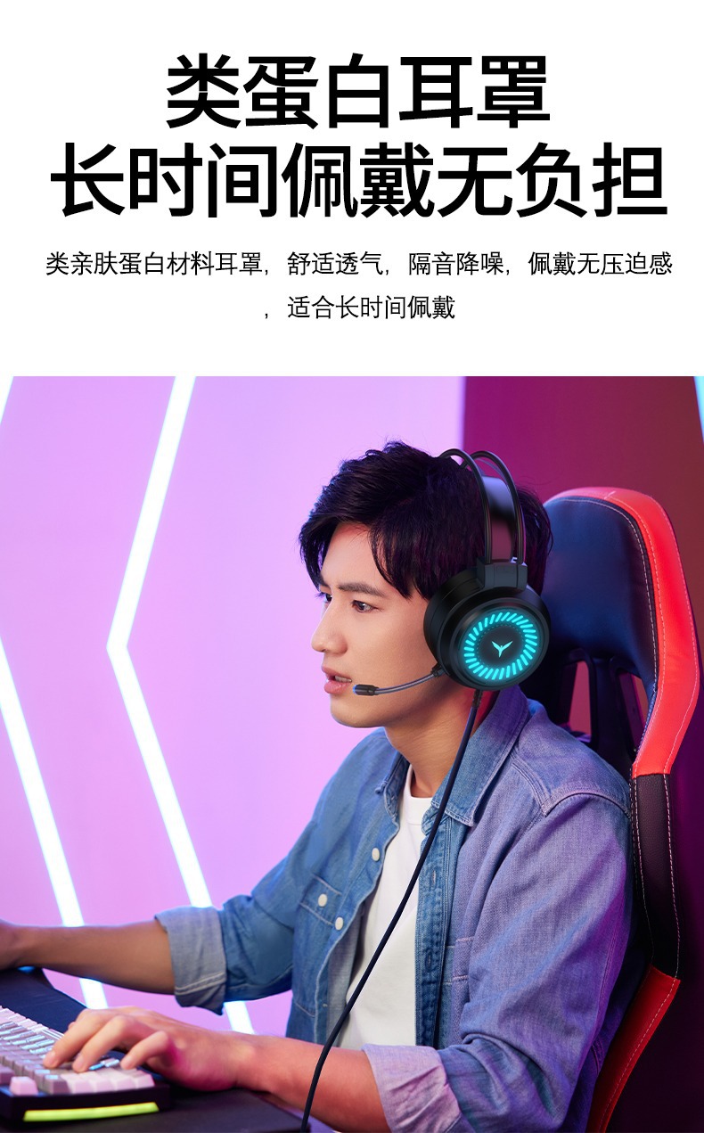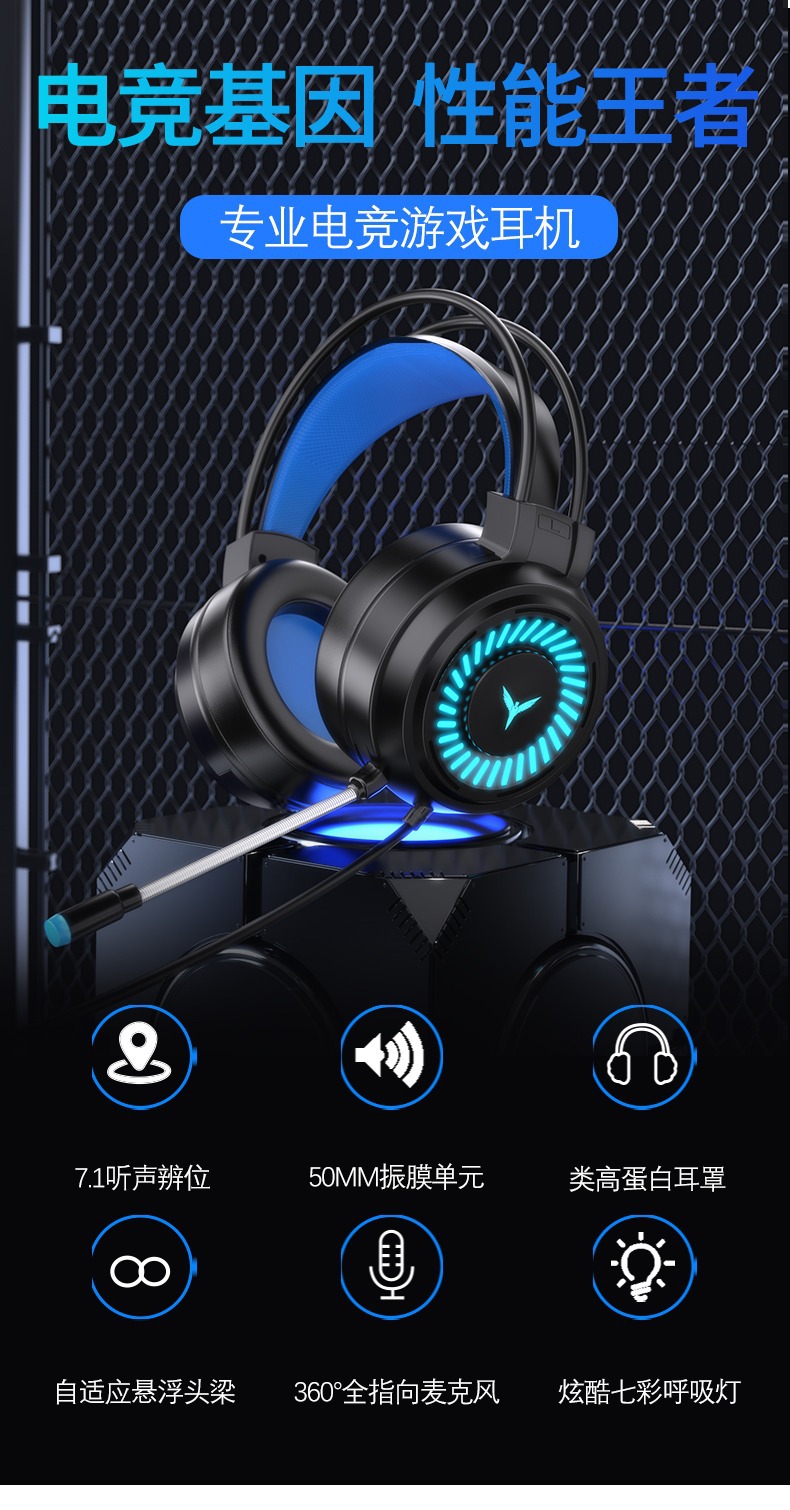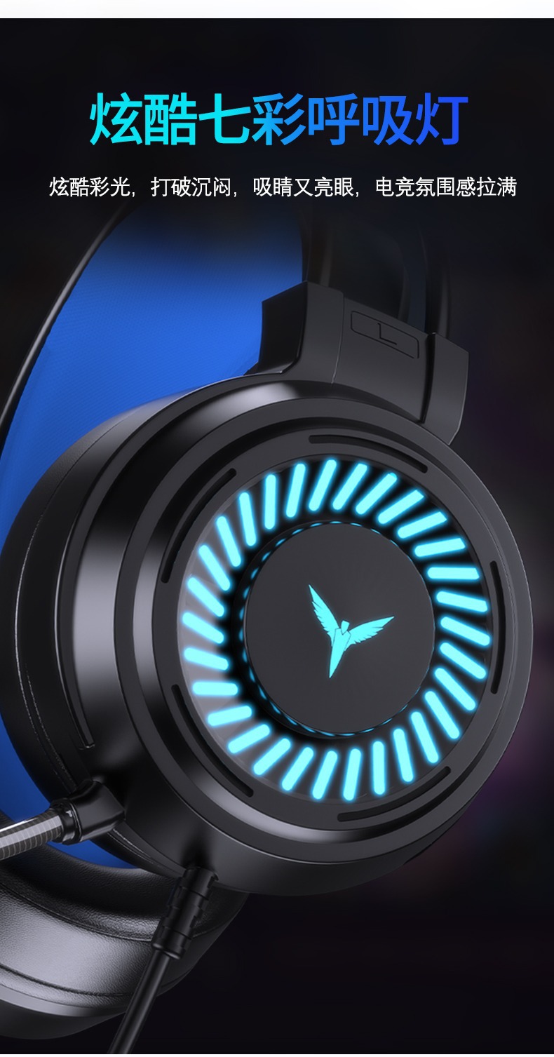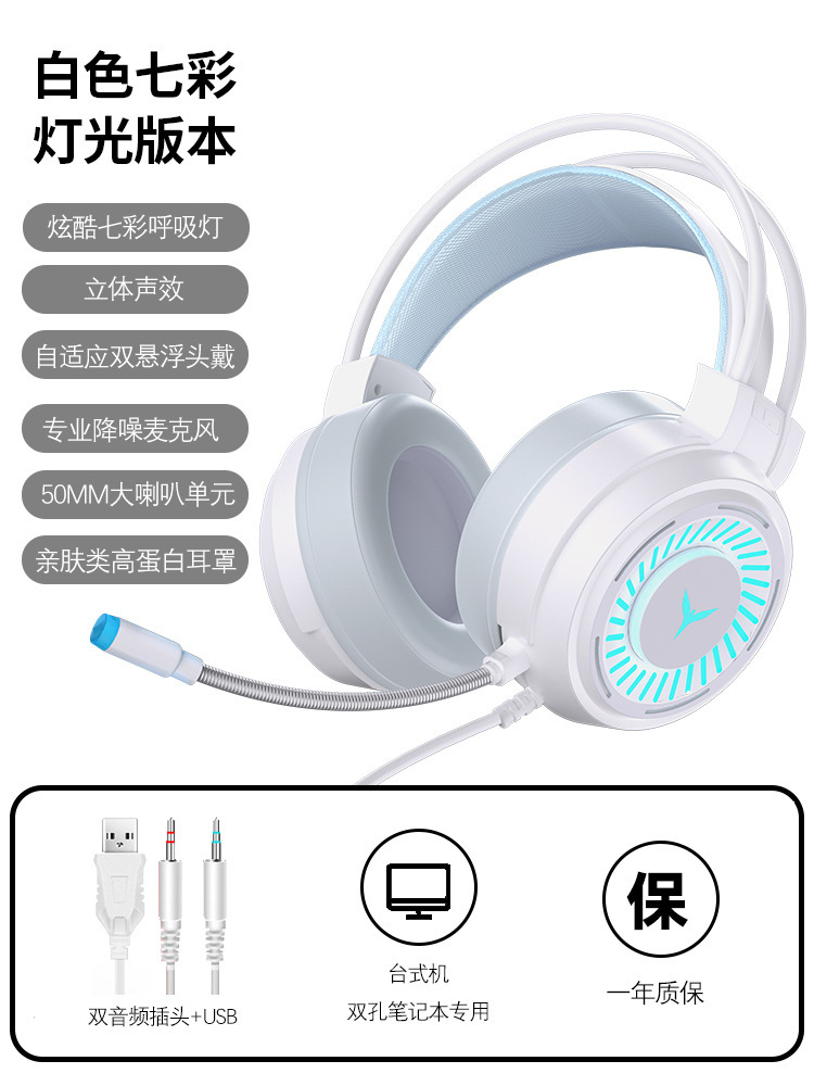 Трансграничная светящаяся игровая гарнитура для компьютера, проводная гарнитура 7.1 с одним USB-портом, гарнитура для киберспорта, гарнитура для ноутбука