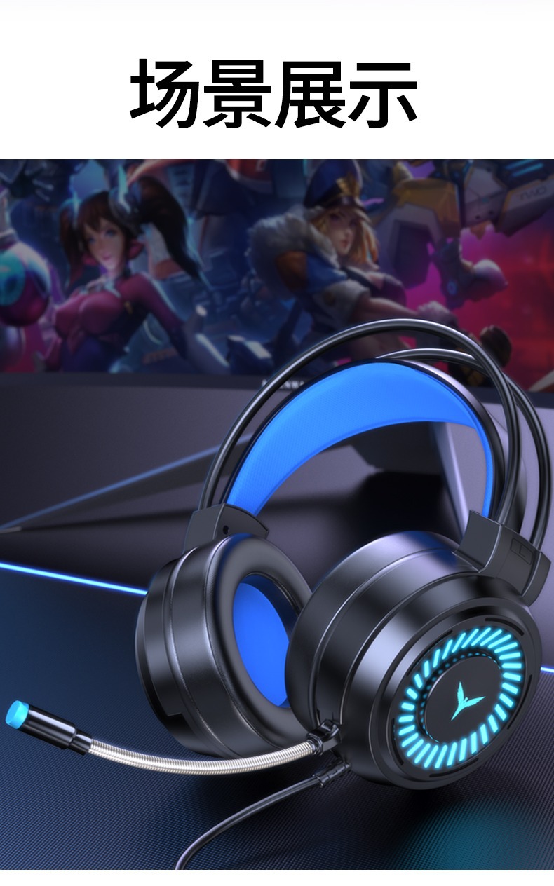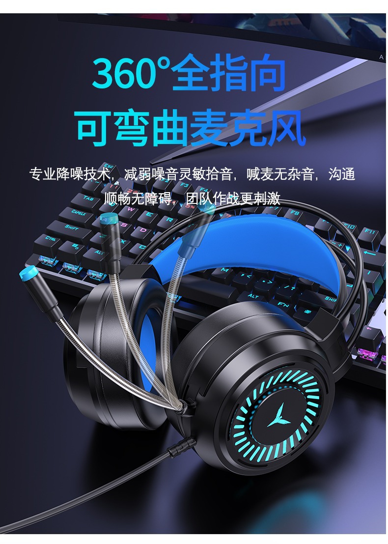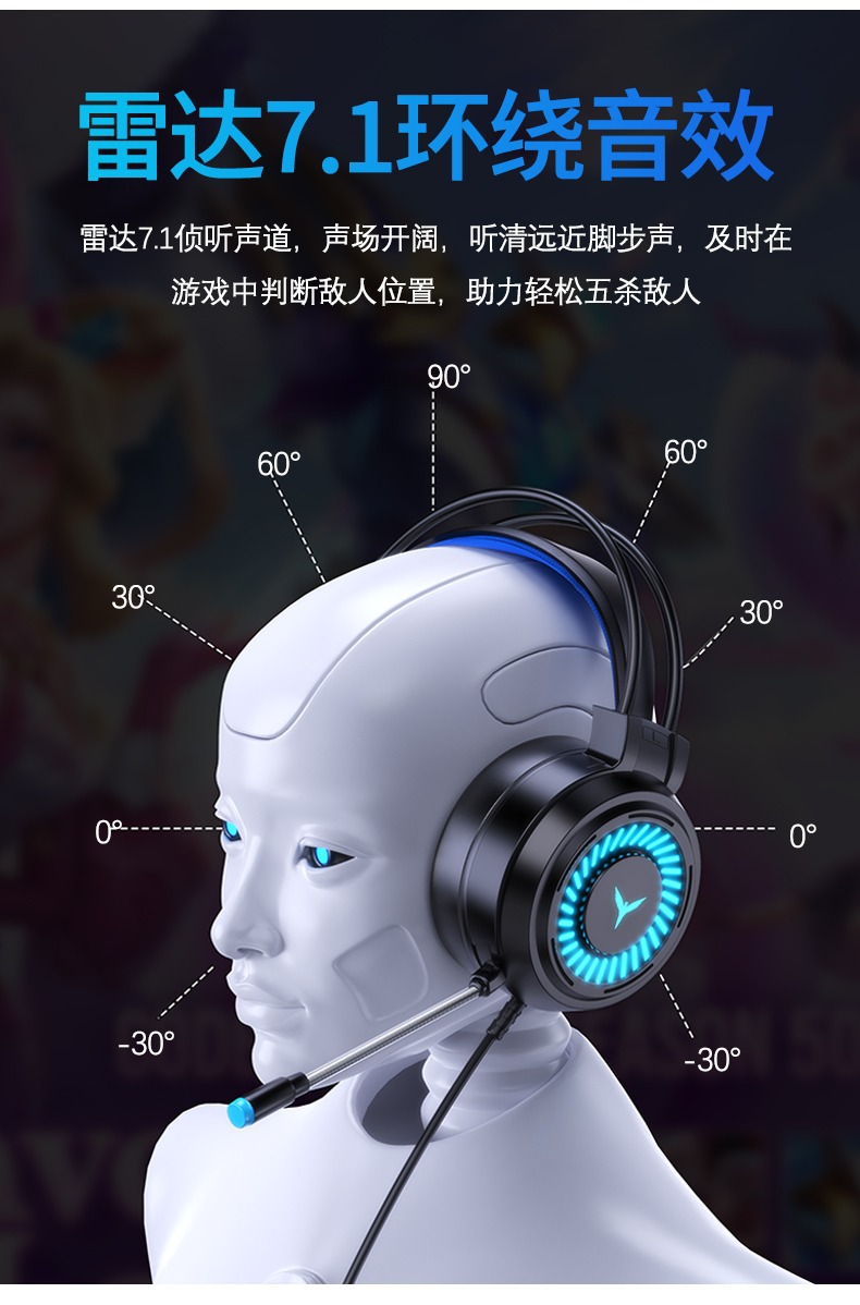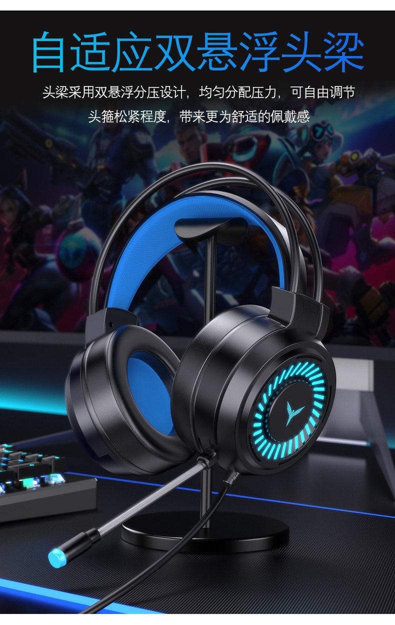 Трансграничная светящаяся игровая гарнитура для компьютера, проводная гарнитура 7.1 с одним USB-портом, гарнитура для киберспорта, гарнитура для ноутбука