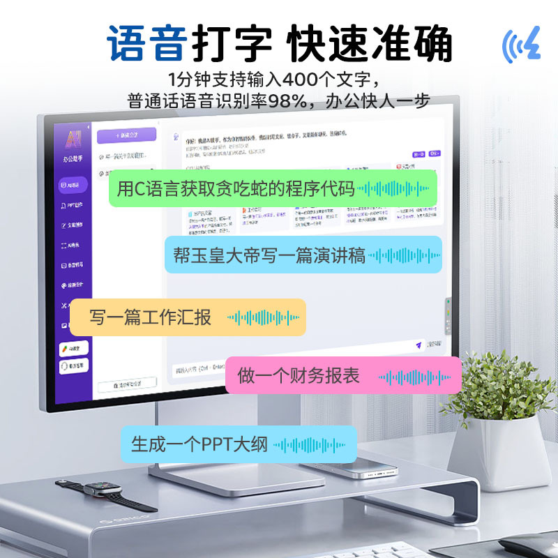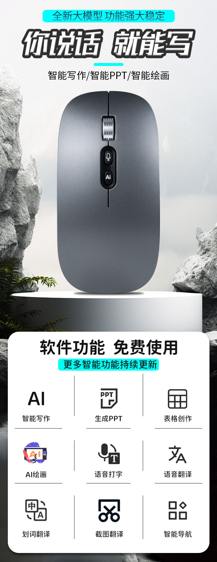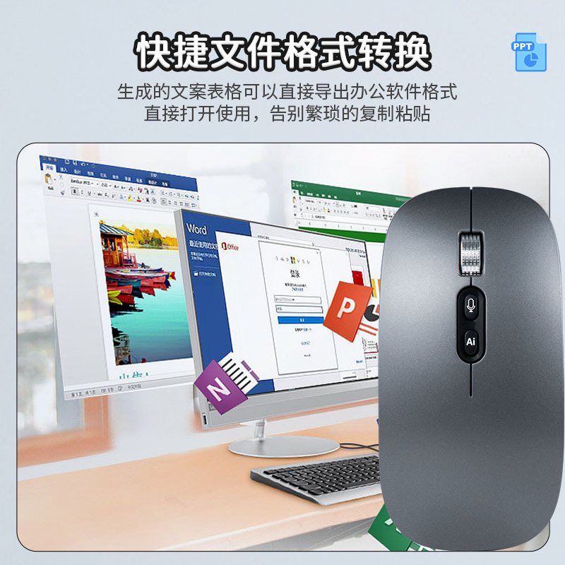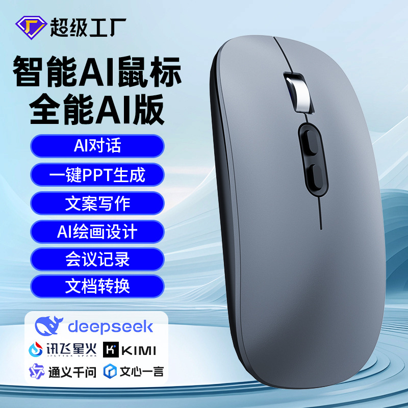 工厂现货无线AI鼠标 语音打字翻译语言可添加Deepseek