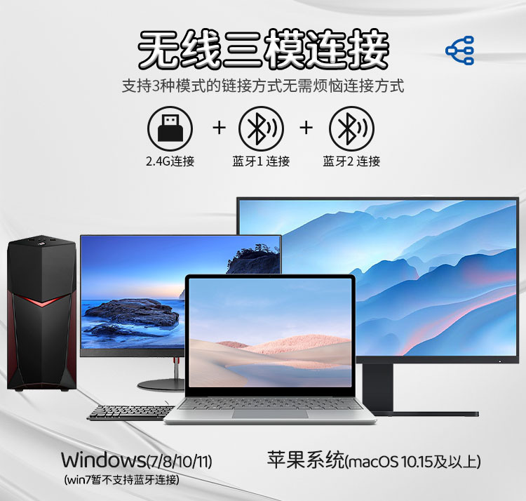 2.4G无线+蓝牙5.0滑鼠双模静音 笔记本男女生办公可充电