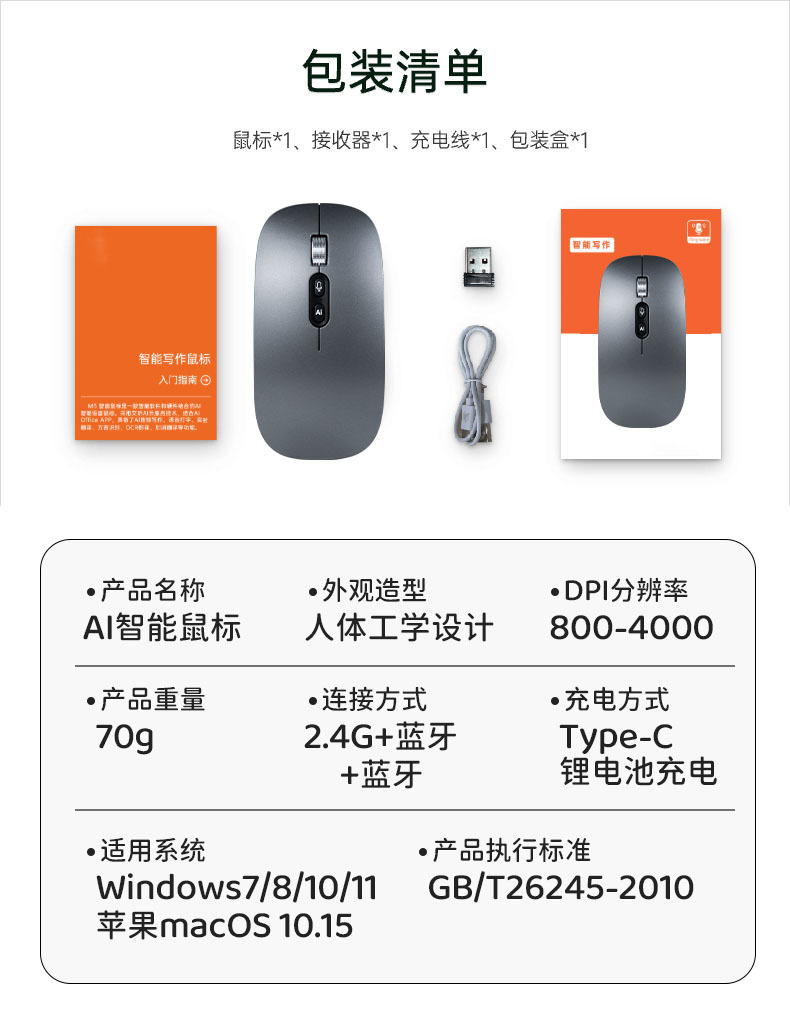 工厂严选AI智能鼠标5键6键双模蓝牙翻译写作绘画PPT语音打字