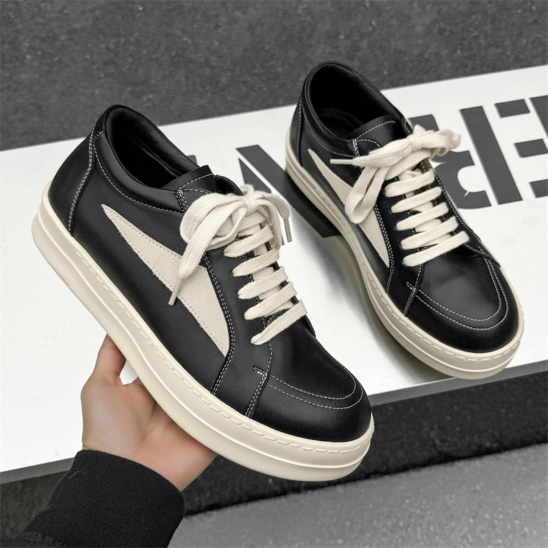 2024 новые туфли с низким баном весной мужские нишевые туфли с толстым дном на высокой улице повседневные кроссовки волны европейские и американские кожаные туфли 1101-J