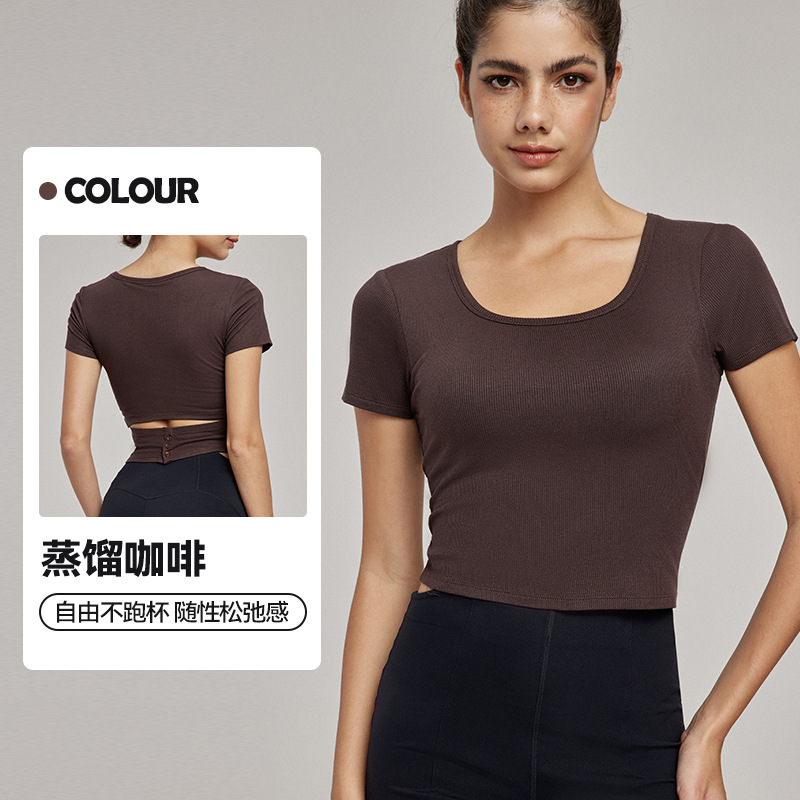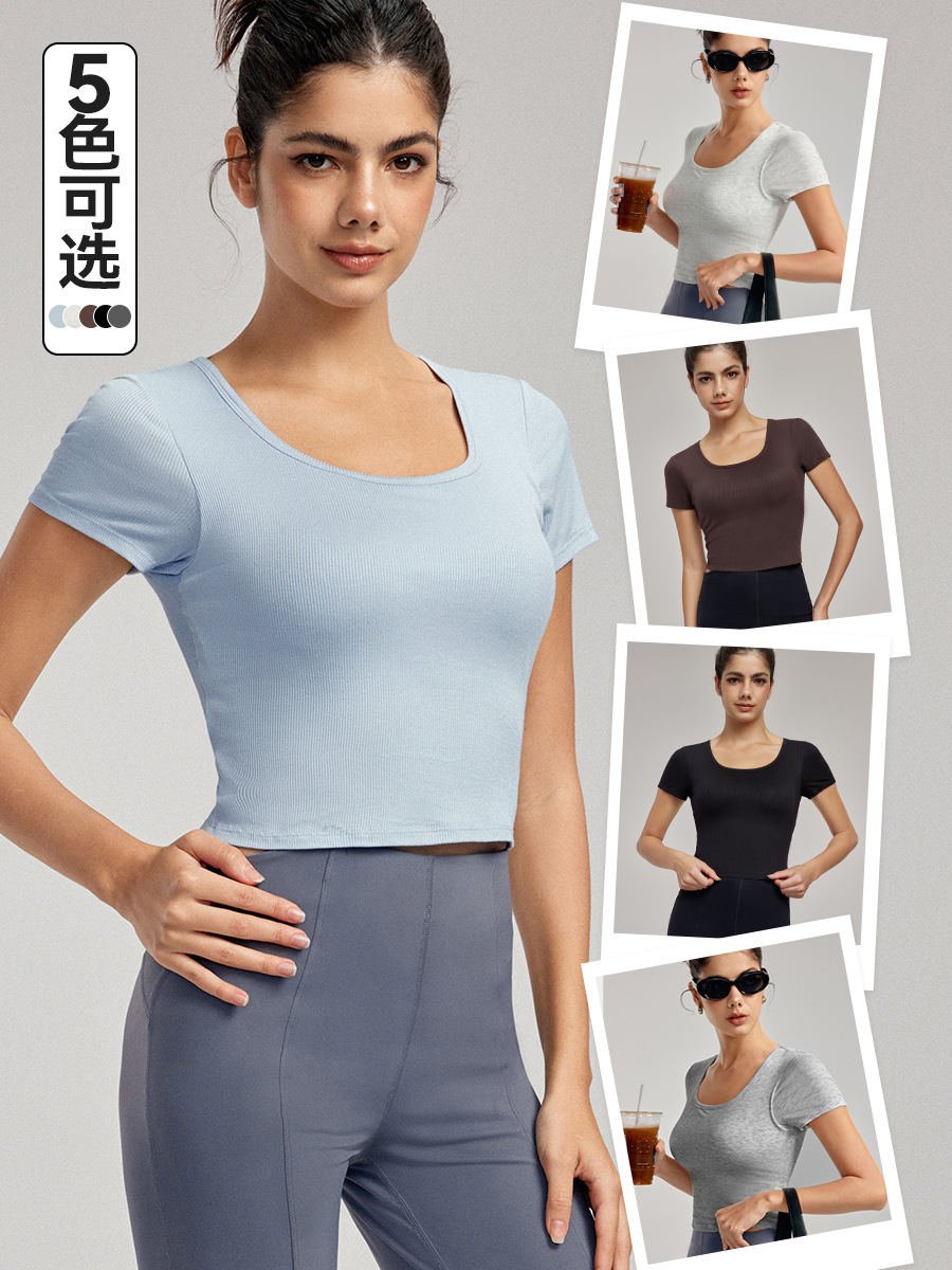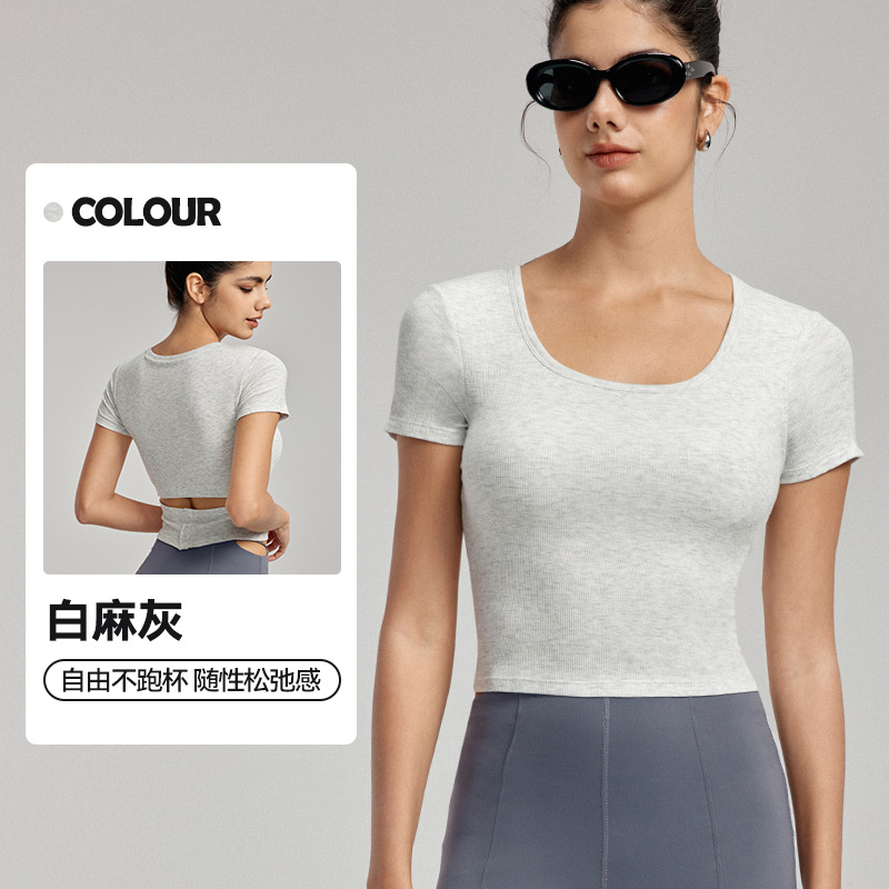 Топы для одежды для йоги, высококачественные полупостоянные нагрудные подушечки, дышащие футболки для фитнеса, без чашек для бега, облегающие спортивные женские летние футболки с короткими рукавами.