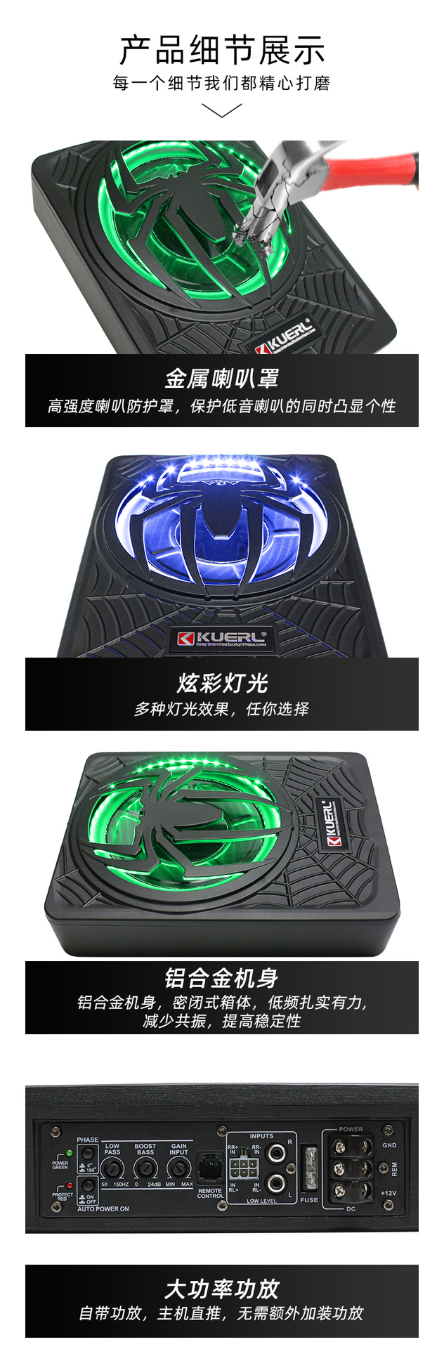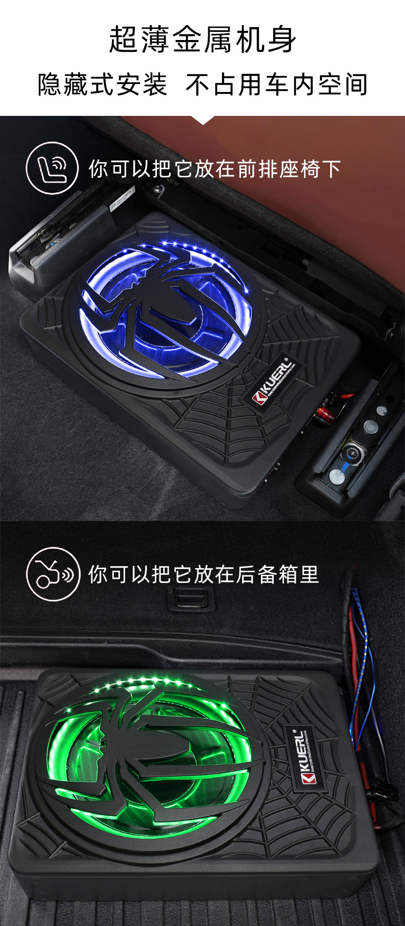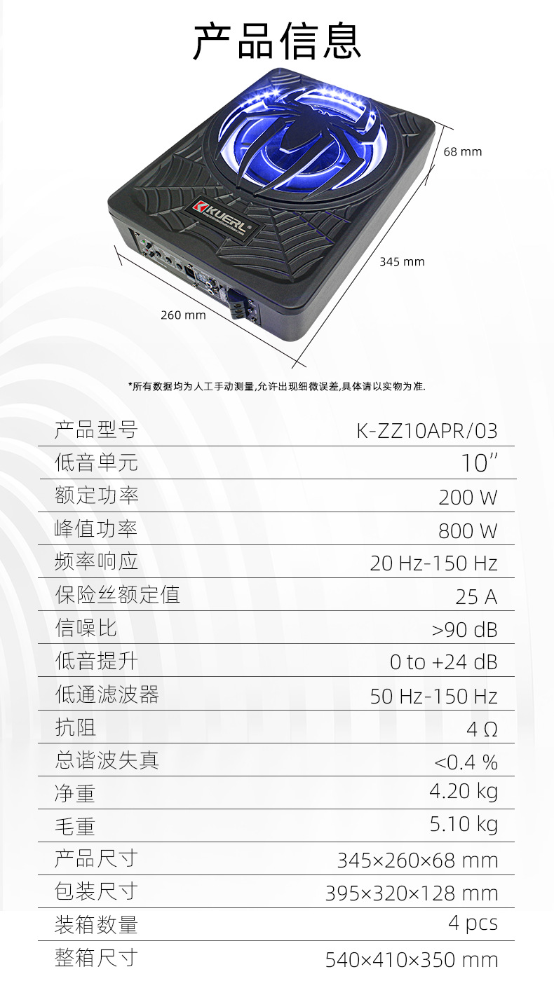 Производитель оптовой автомобильной аудио модифицированный паук с лампой 10-дюймовый мощный активный автомобиль ультратонкий сабвуфер