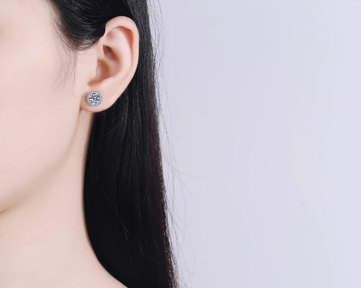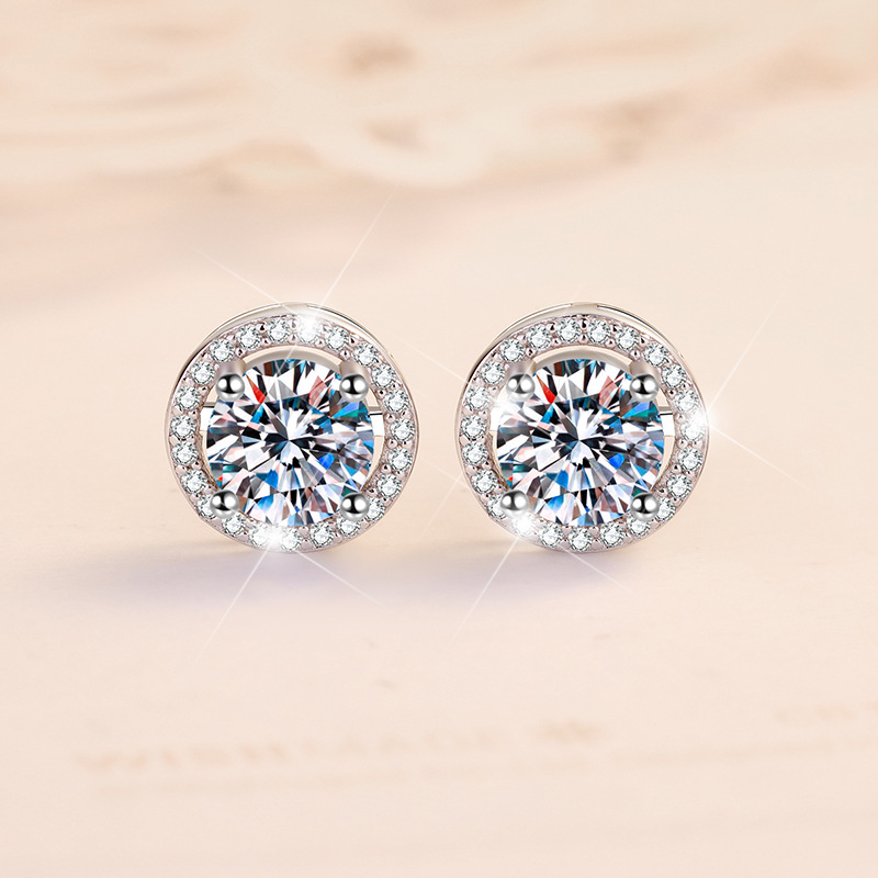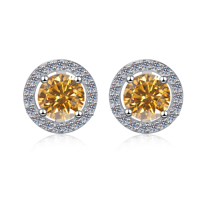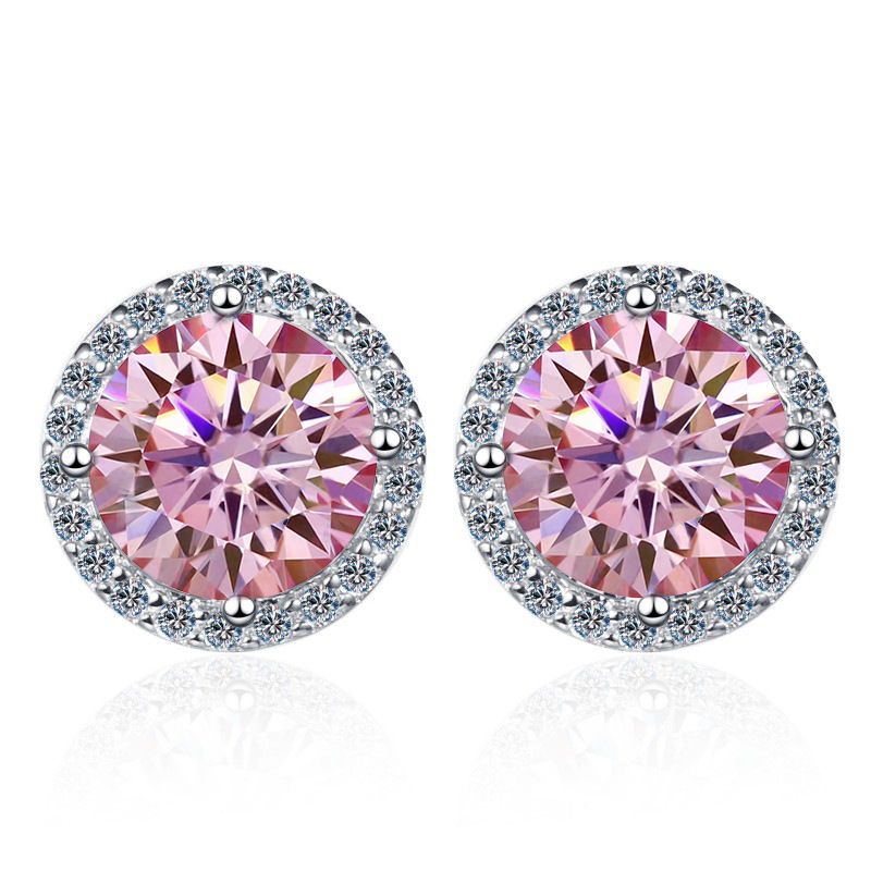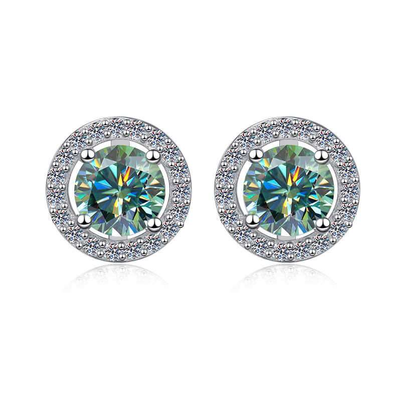 Муассанит Серьги Цветные Круглые Серьги Моделирование Моды 1/2/3 карата Трансграничные ювелирные изделия Оптовая 925 Серебряные Серьги