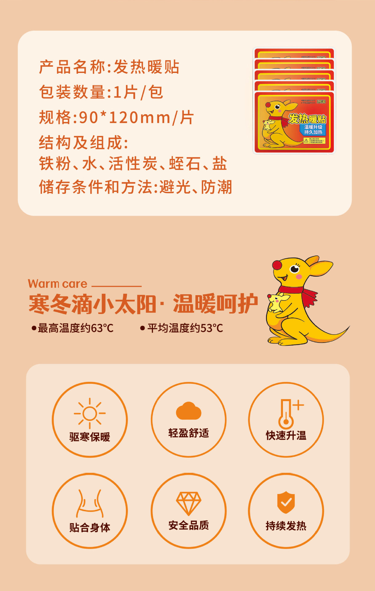 Новый кенгуру теплая детская наклейка самонагревающаяся