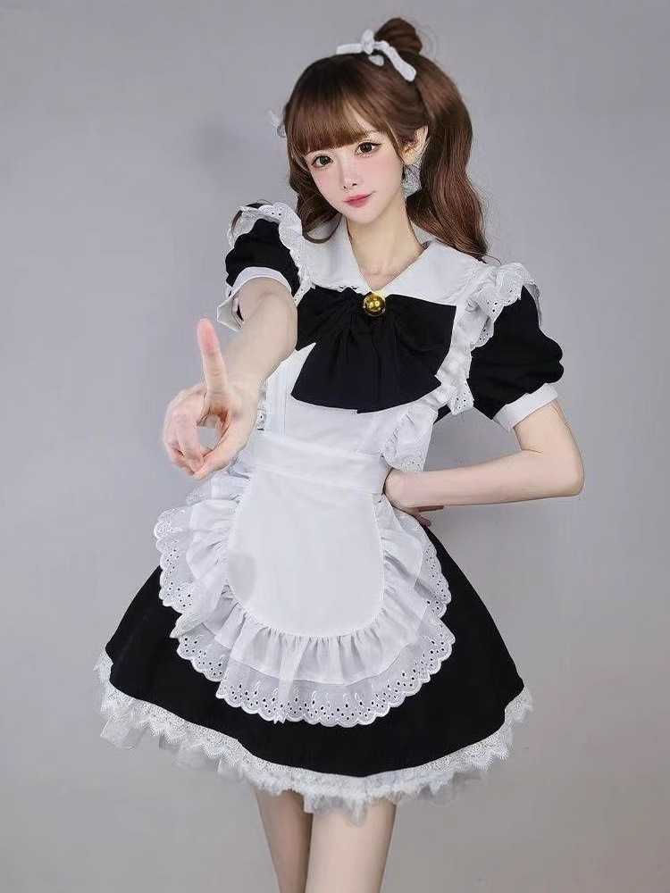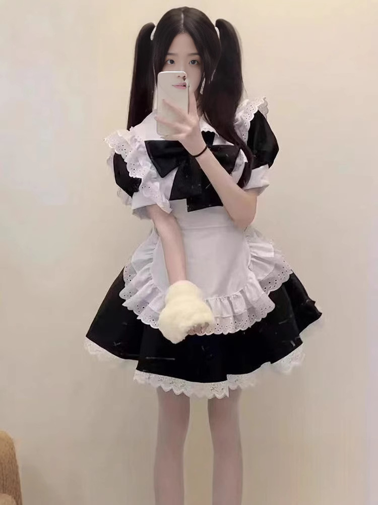 Костюм для горничной Cos Фартук для горничной Lolita Маленькая милая мягкая девушка Лори Горничная Униформа Комплект Японский