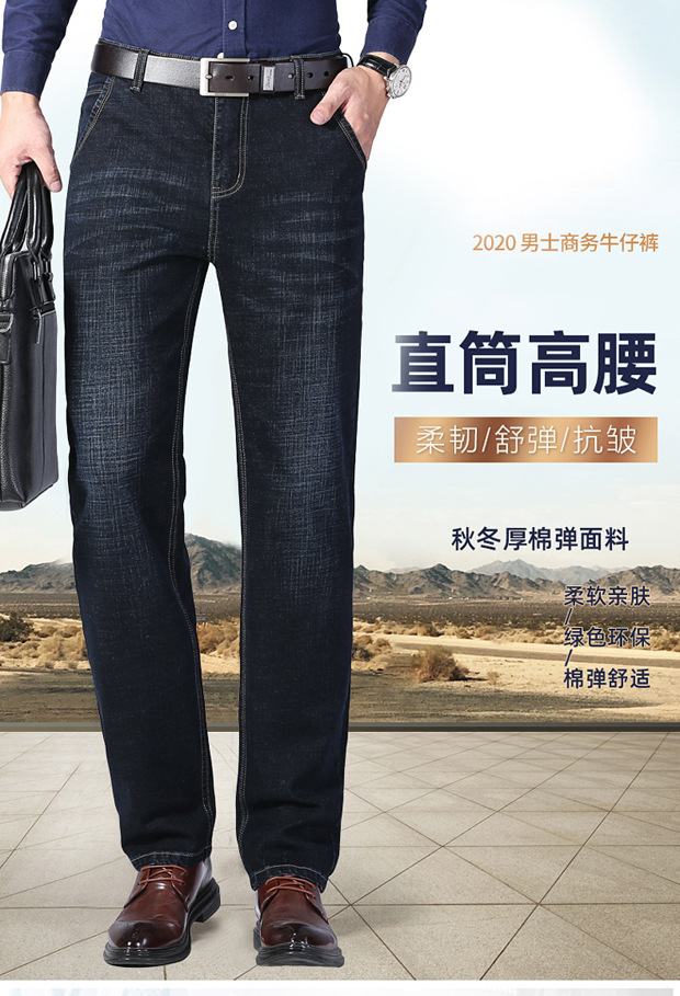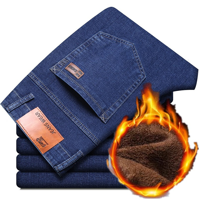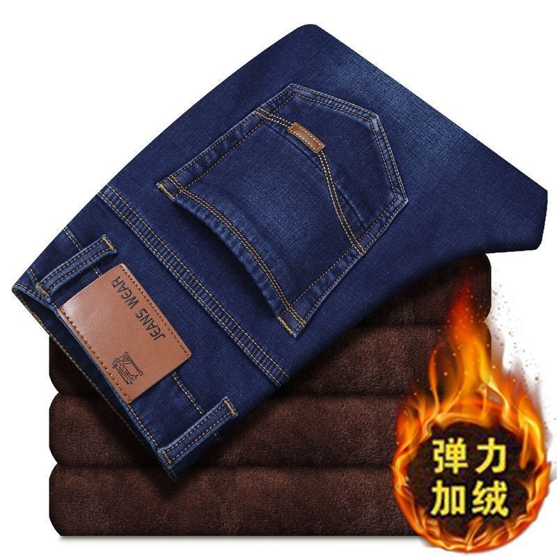 8010 элитные джинсы новые мужские осенние и зимние свободные прямые мужские брюки эластичные повседневные плюшевые толстые брюки Xintang
