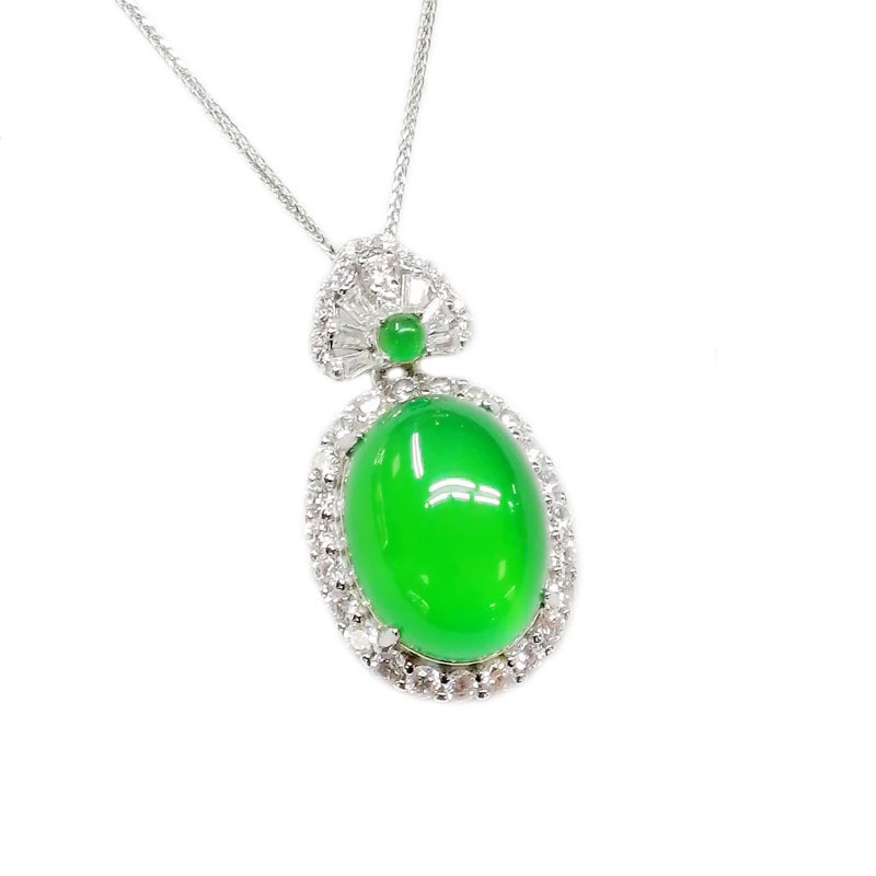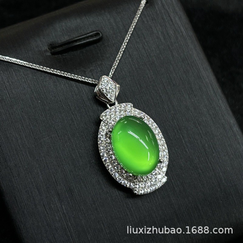 S925 Серебряный инкрустированный зеленый халцедон голубиного яйца