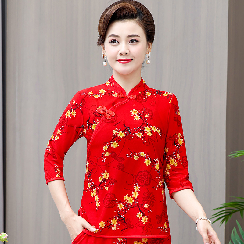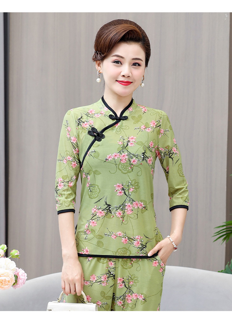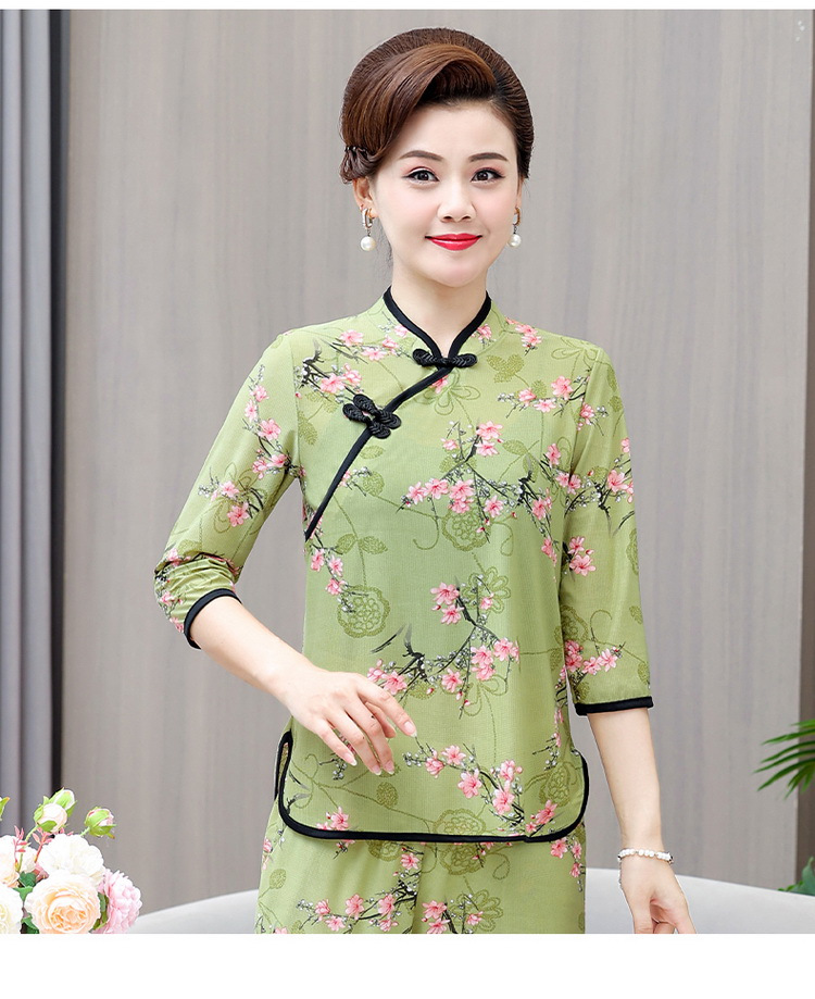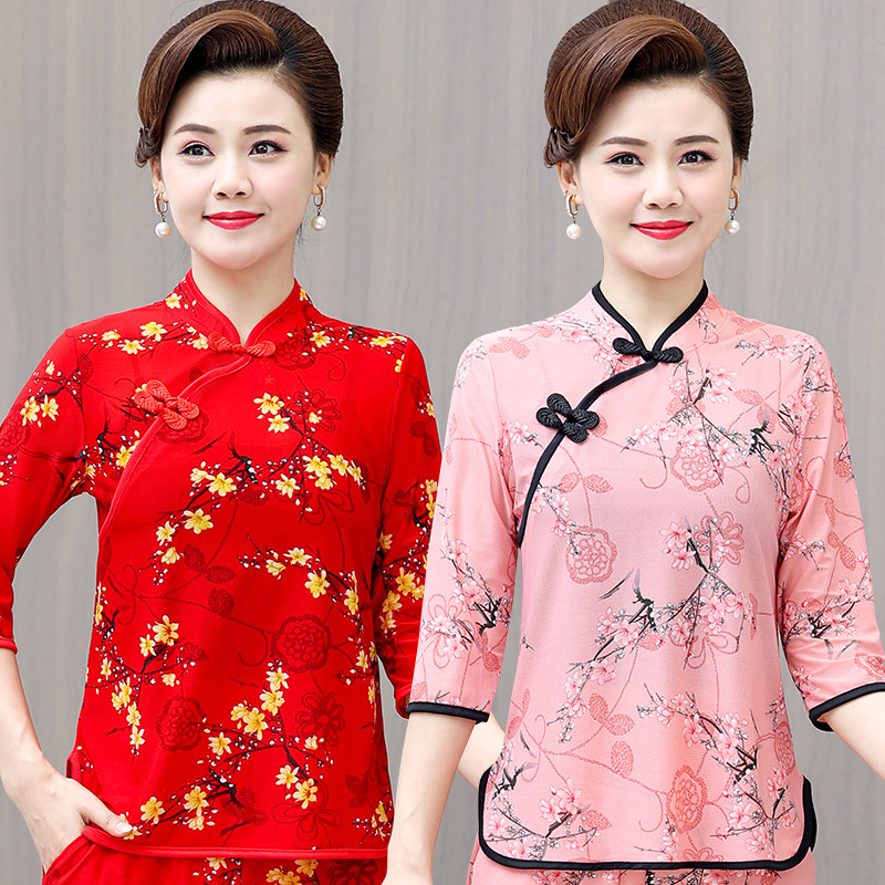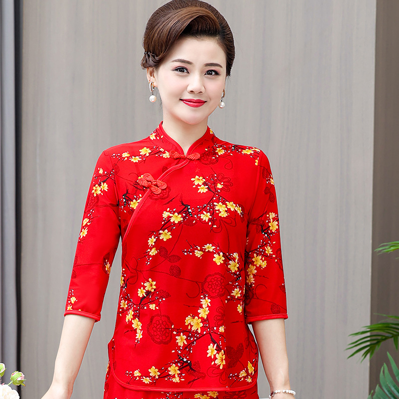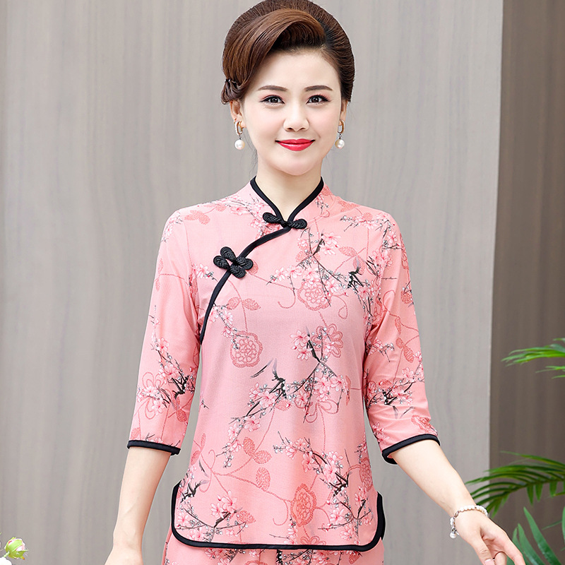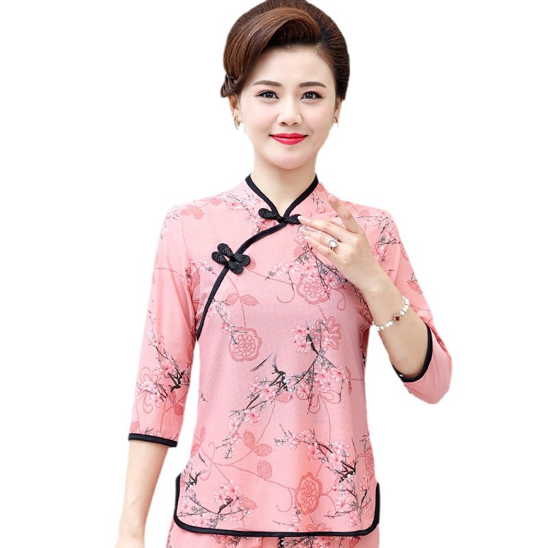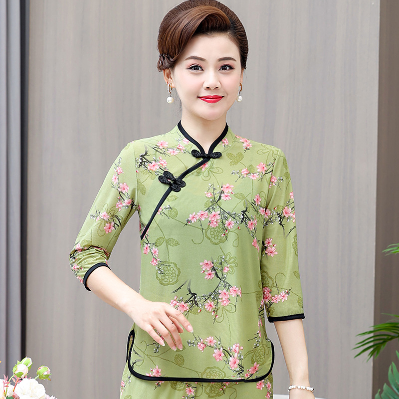 Среднего и пожилого возраста летняя одежда мамы чонсам воротник маленькая рубашка тонкая весной и летом