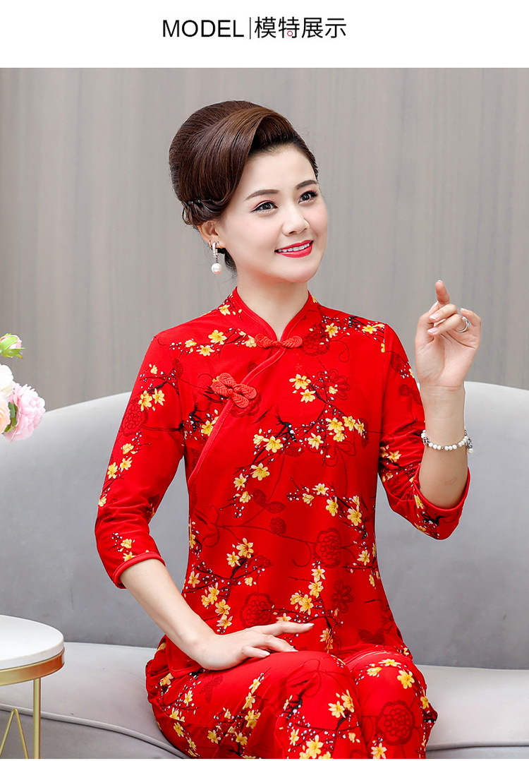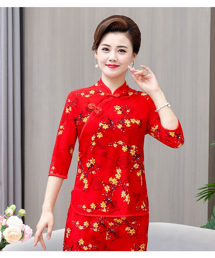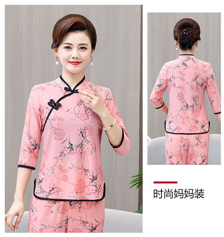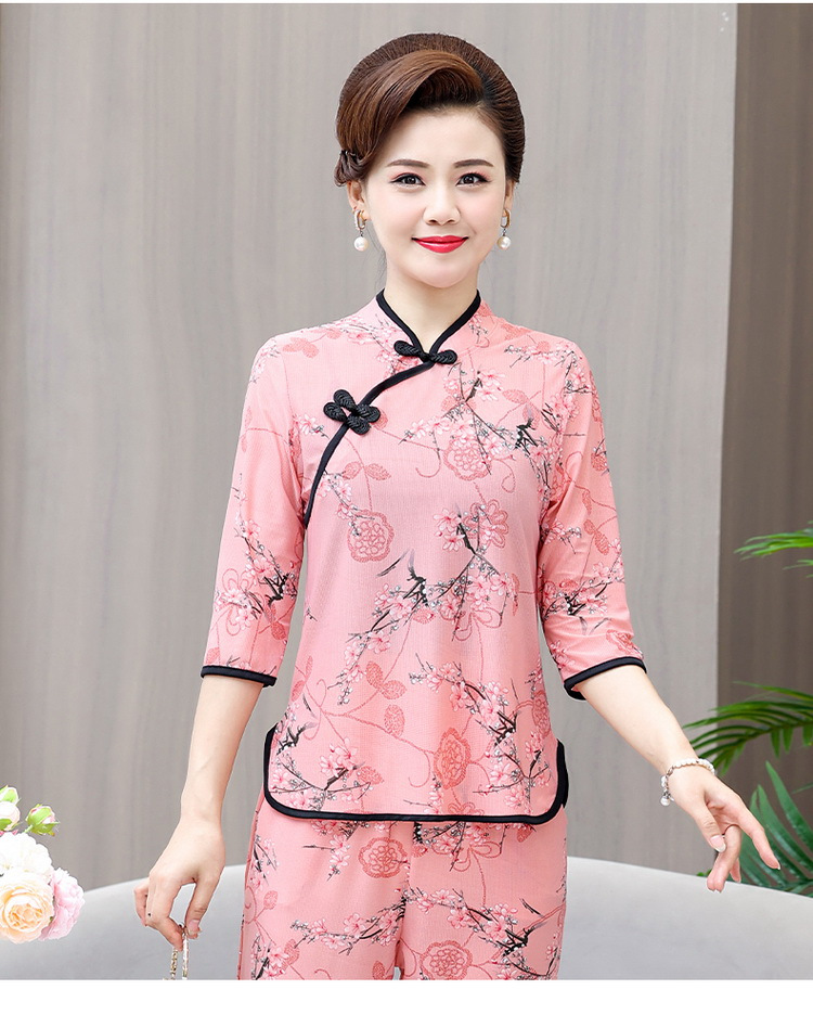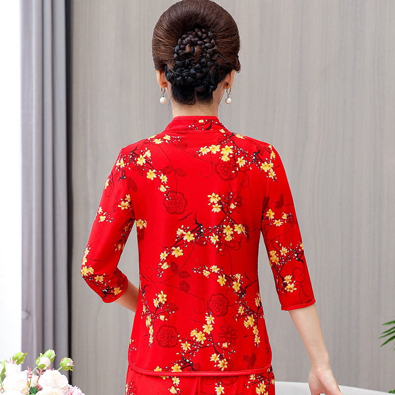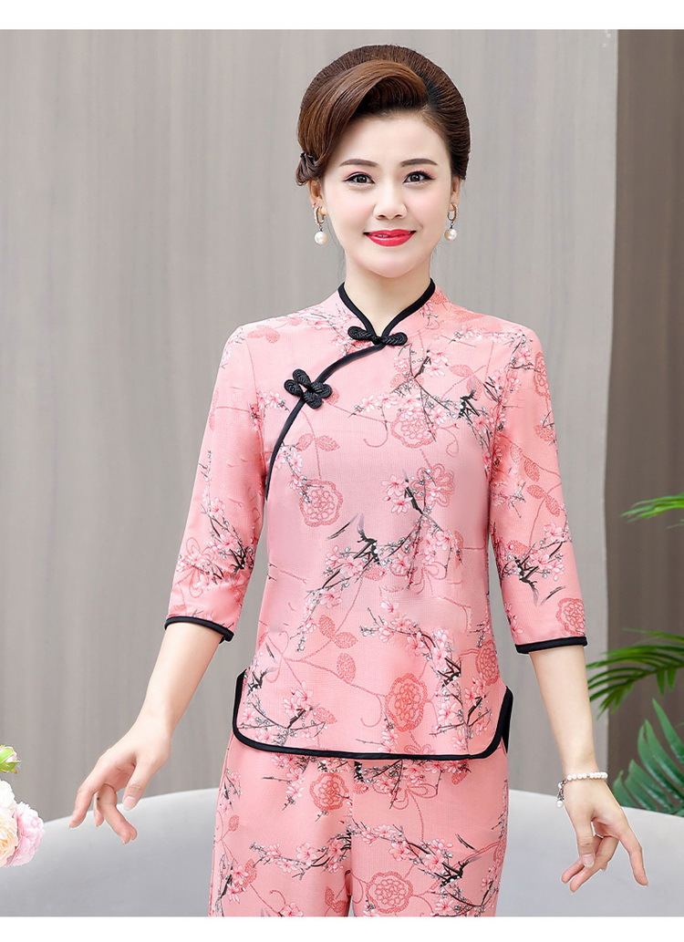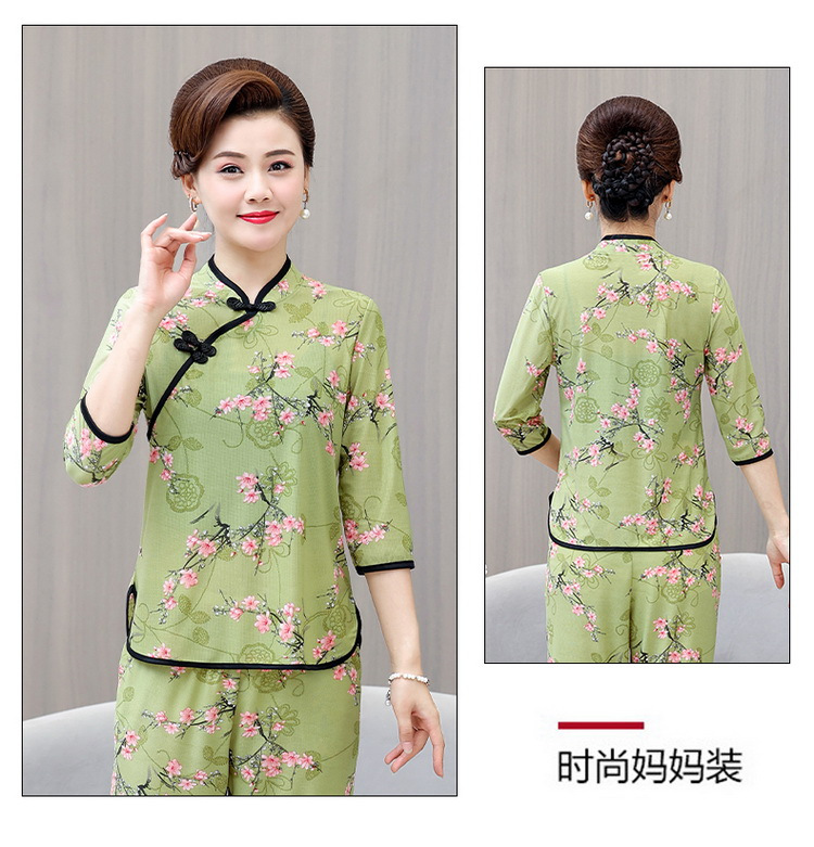 Среднего и пожилого возраста летняя одежда мамы чонсам воротник маленькая рубашка тонкая весной и летом