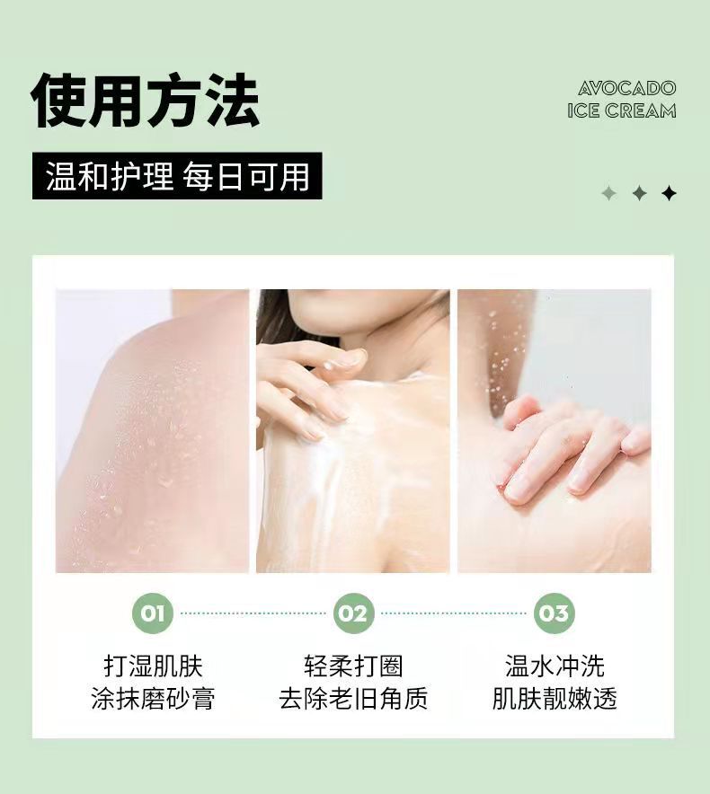 Yinmei авокадо крем для мороженого 250 г Отшелушивание всего тела куриная кожа глубоко очищает масло для контроля взрыва оптом