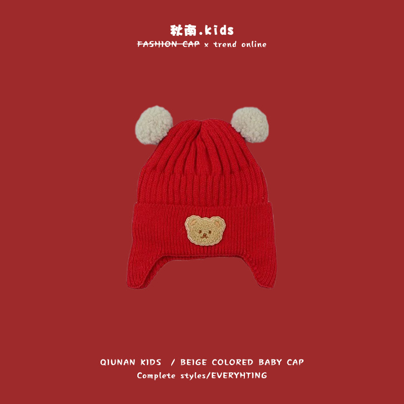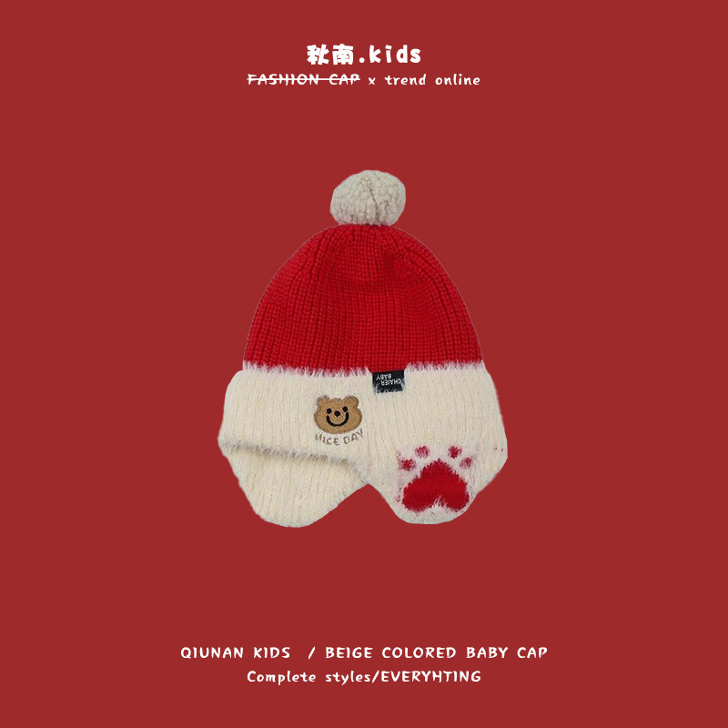 Осенняя новогодняя красная детская шляпа Зимняя холодная шляпа Lei Feng Шляпа для мальчиков Ушная шляпа для девочек