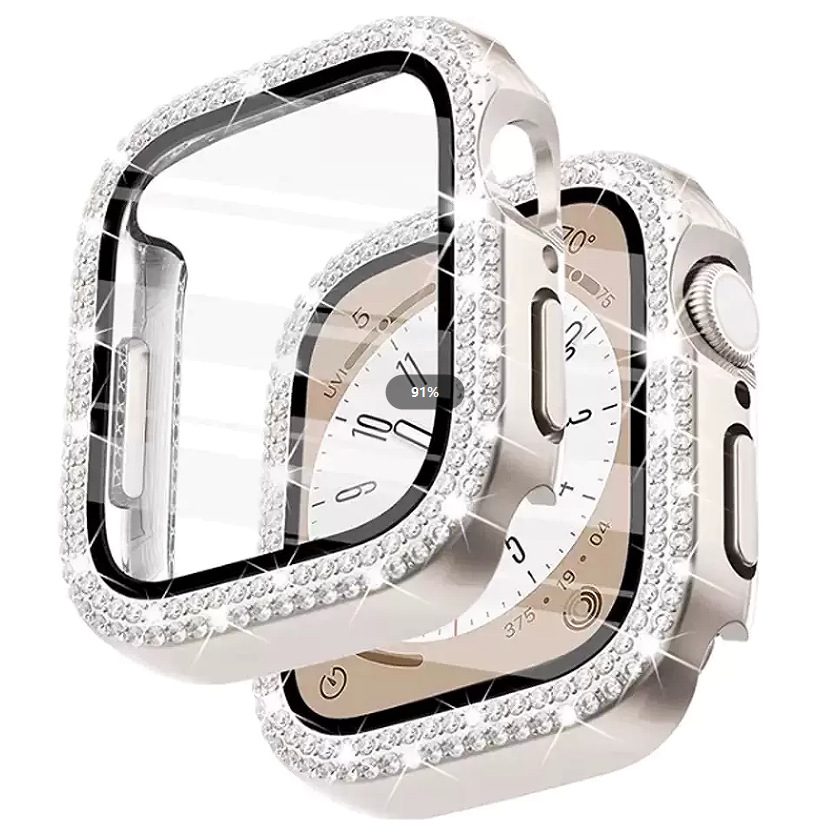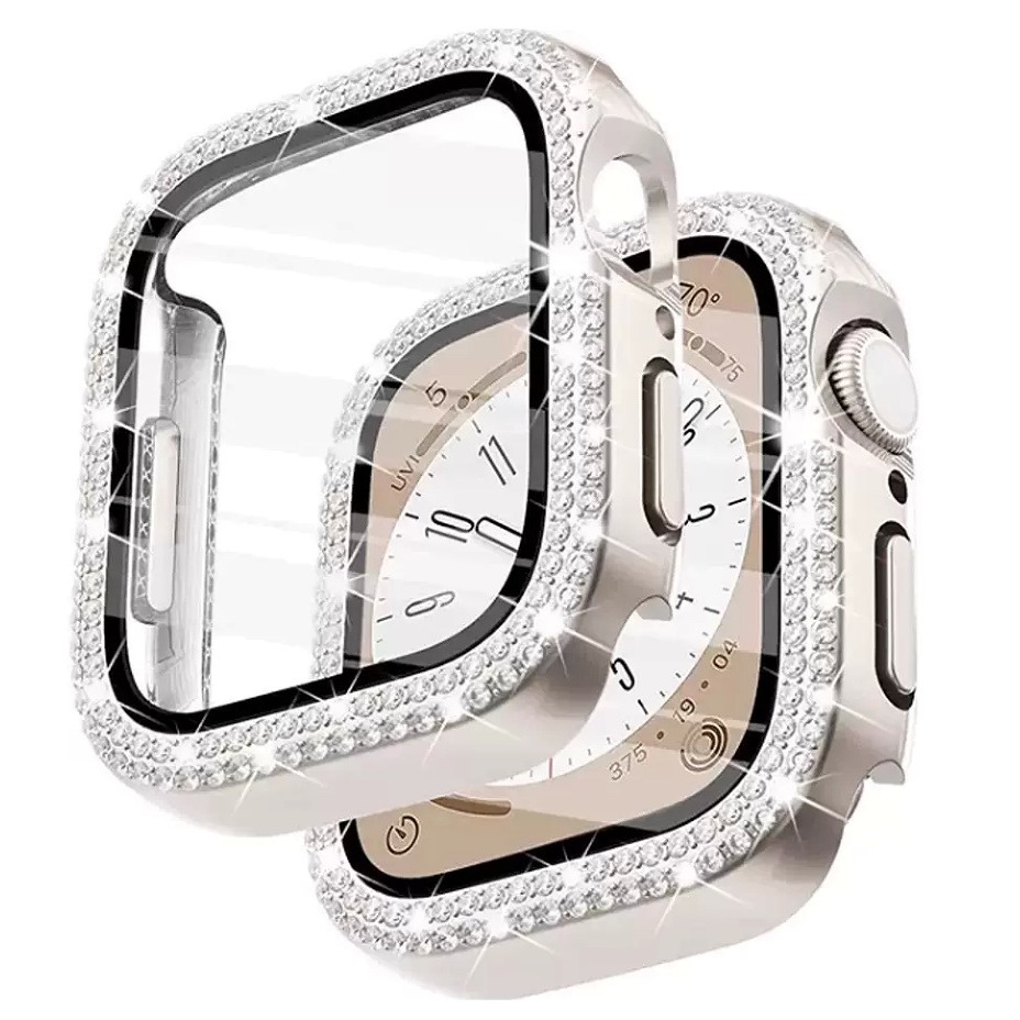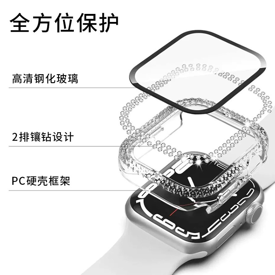 Применимо Apple Watch s10 двухрядный Diamond Защитный чехол Apple watchs9 Защитный чехол для ПК с закаленной пленкой