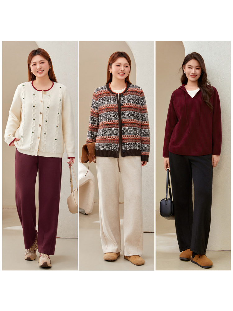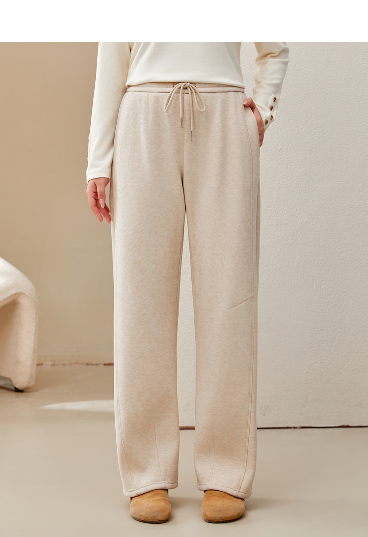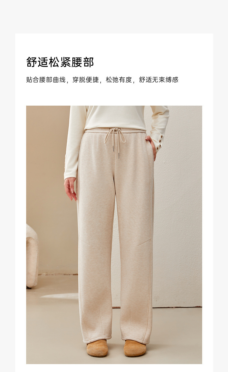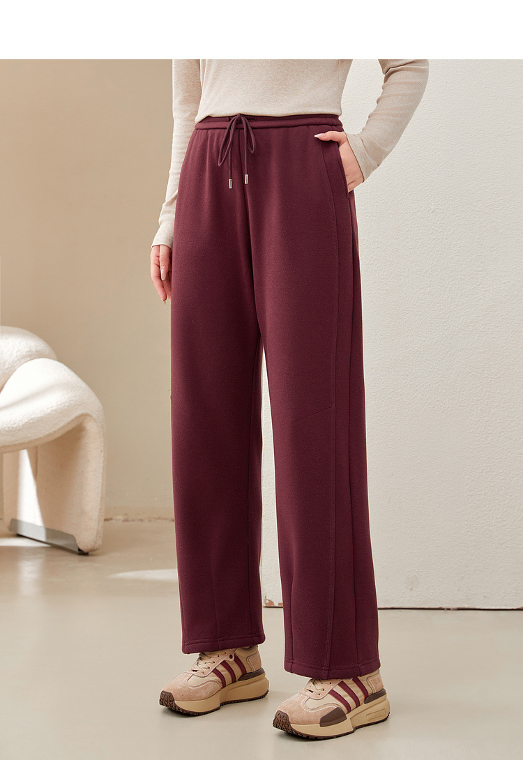 [Прямые широкие брюки рыхлые серповые банановые брюки] Felty Show Женские флисовые брюки большого размера толстые мм зимние новые