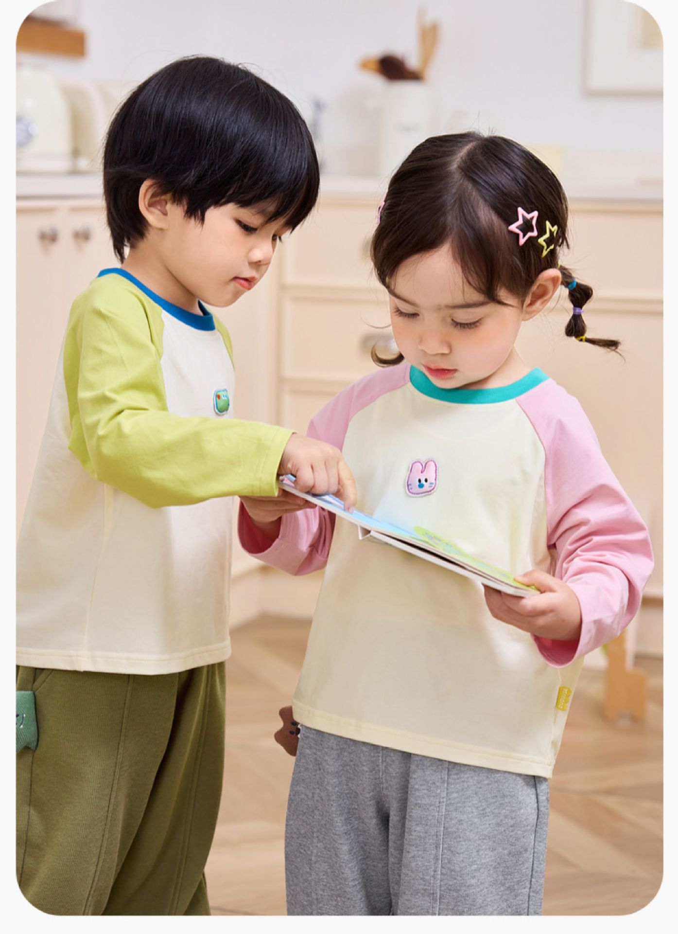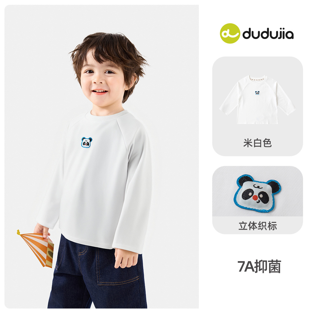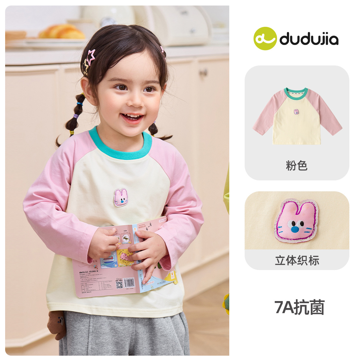 [45 юаней за 2 шт.] Флисовая базовая футболка для малышей от Dudu на осень и зиму, начесанная футболка для мальчиков, зимняя детская одежда с длинным рукавом для девочек