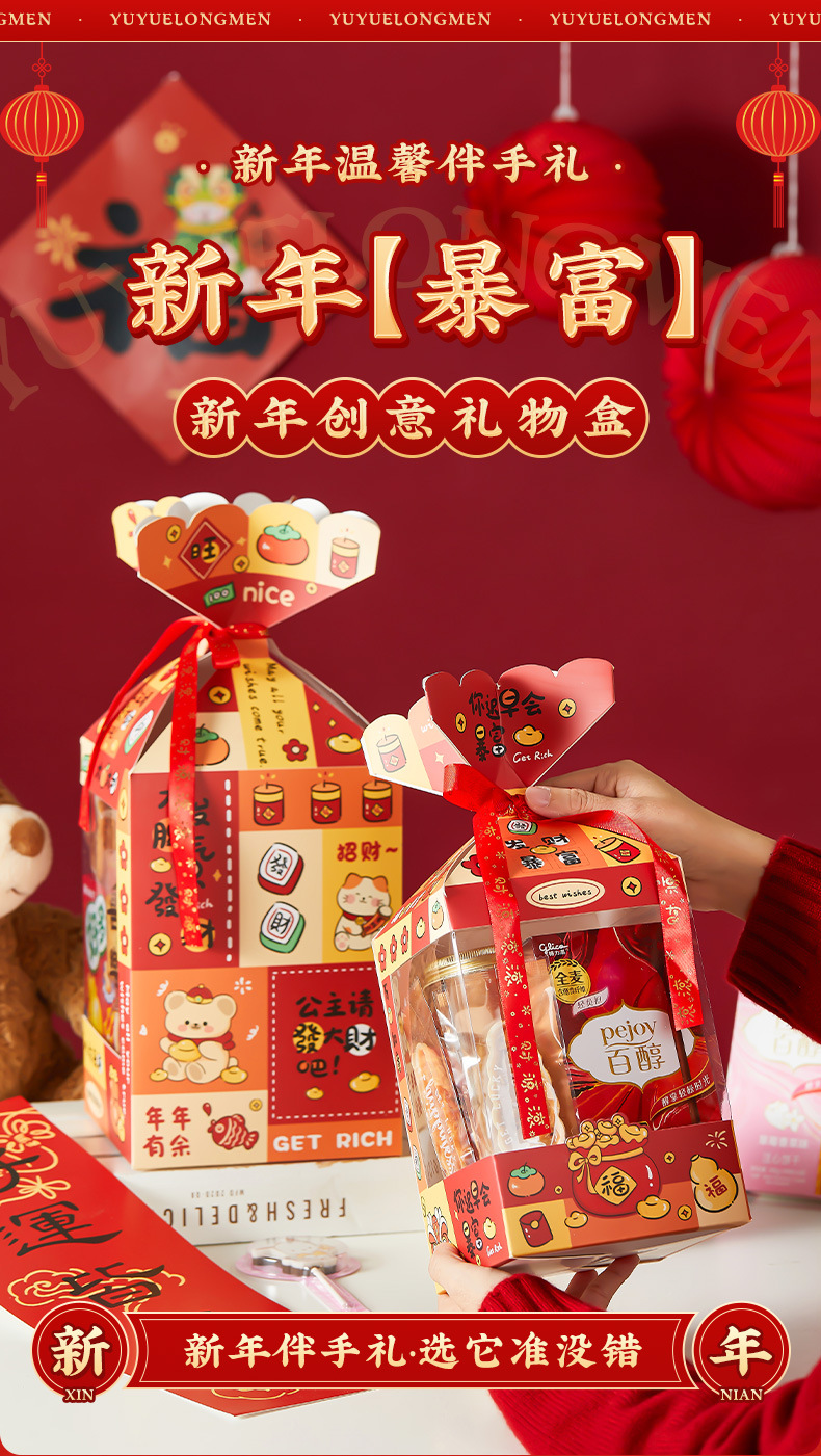 Новогодняя новогодняя подарочная сеть красная взрывная коробка для девочек