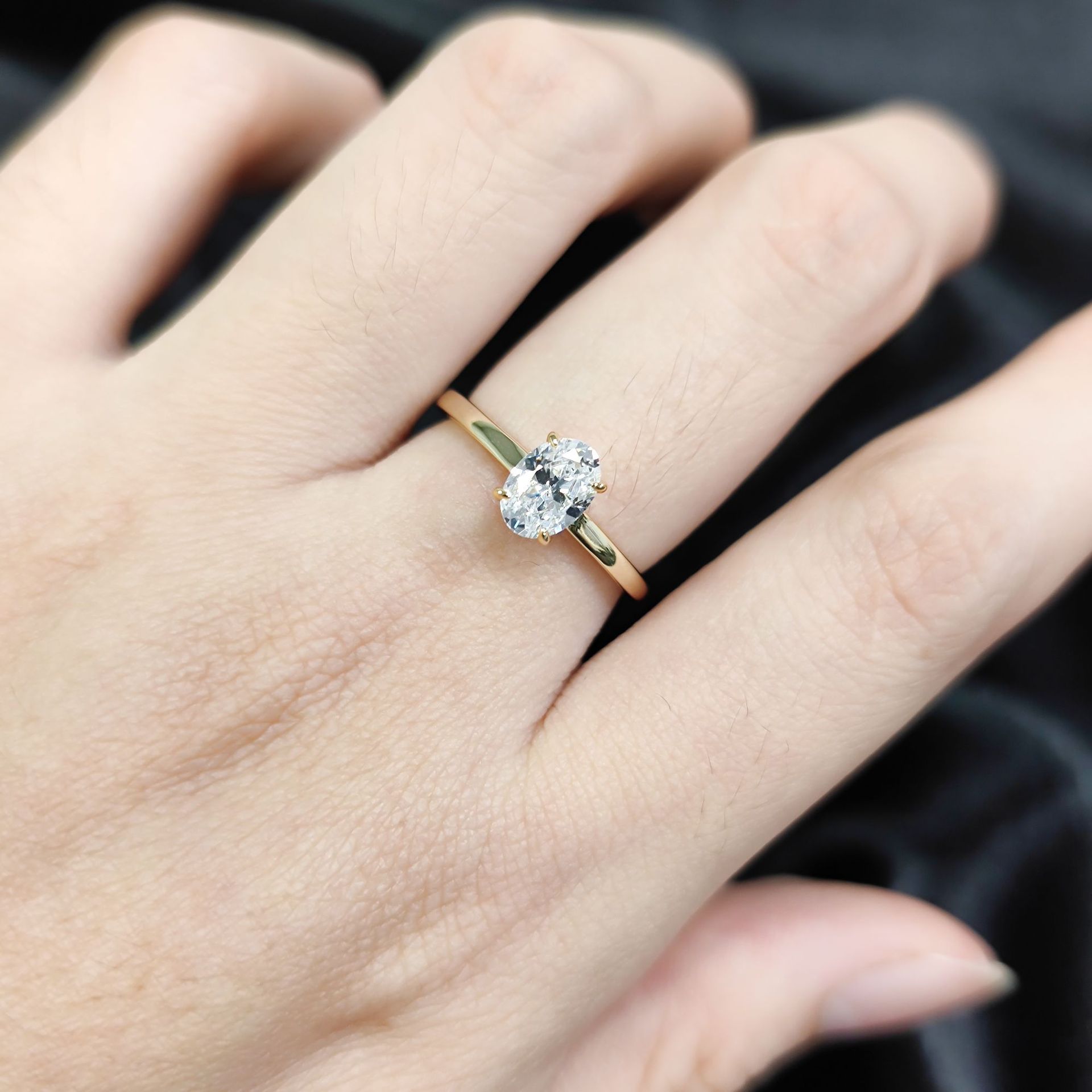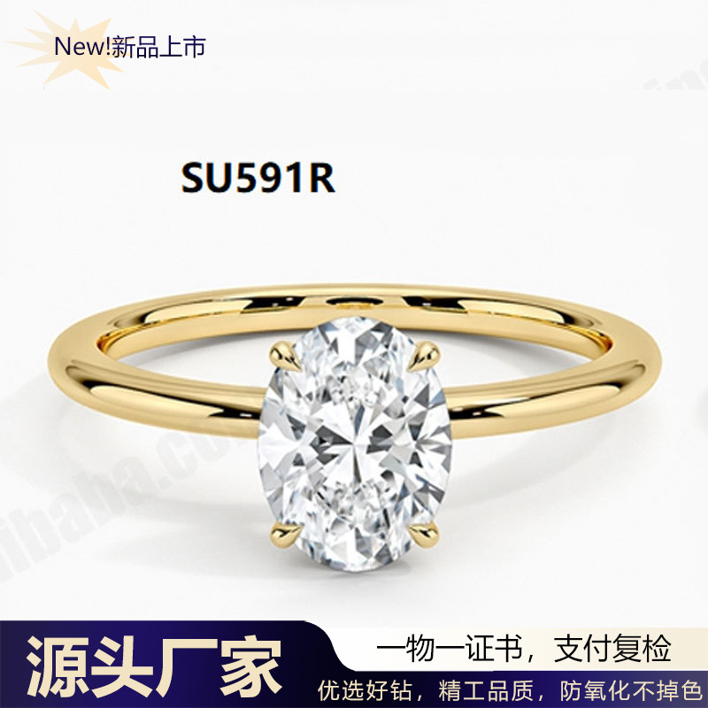 Овальный культивирует кольцо с бриллиантом лаборатория искусственный алмаз 1 карат s925 стерлингового серебра позолоченное кольцо муассанит