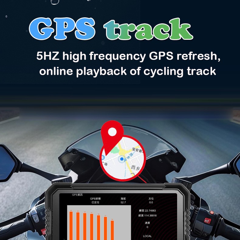 GPS轨迹:5HZ高频GPS刷新,在线播放骑行轨迹 蓝牙:5.0蓝牙双通道,实现手机/耳机/车机三方互联